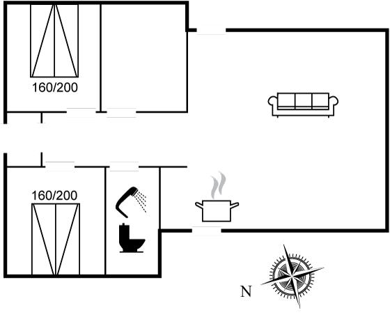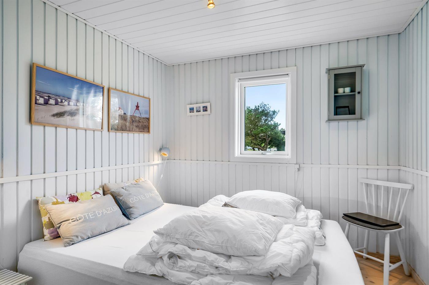 Der er i alt 2 soveværelser. Sovepladserne fordeler sig på: 4 sovepladser i dobbeltsenge. 2 sovepladser på madrasser. 2 af disse sovepladser befinder sig på husets hems. Derudover er der 1 stk. barneseng.