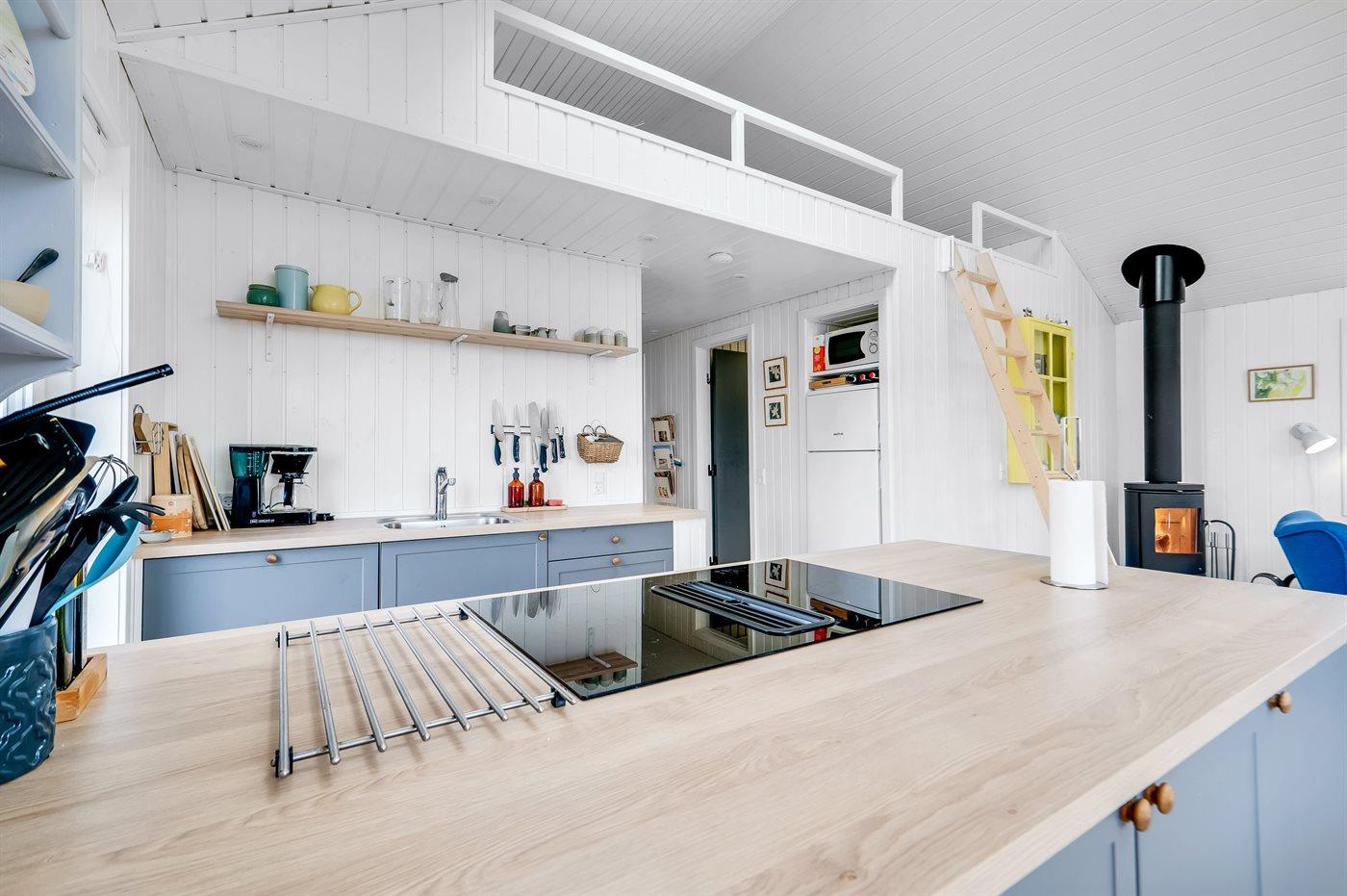 Køkkenet er udstyret med 1 køleskab. Der er 4 induktionskogeplader, varmluftovn, mikrobølgeovn samt opvaskemaskine.