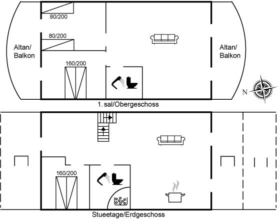 Der er i alt 3 soveværelser. Sovepladserne fordeler sig på: 4 sovepladser i dobbeltsenge. 3 sovepladser i enkeltsenge. 1 af disse sovepladser befinder sig på husets hems.