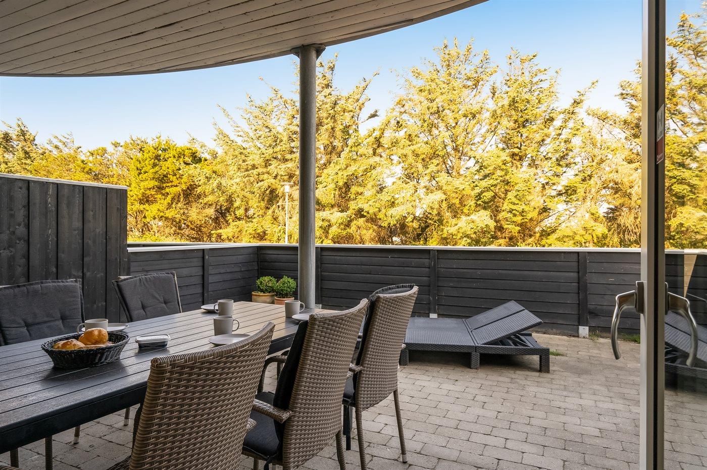 Ferieboligen er beliggende på en 142 m² stor naturgrund. Der er 600 m til havet. Nærmeste forretning er beliggende i en afstand af 750 m. Der er en golfbane i en afstand af 2500 m. Til ferieboligen hører åbent terrasseareal. Desuden er der overdækket terrasse. Grill til rådighed. Parkering ved ferieboligen.