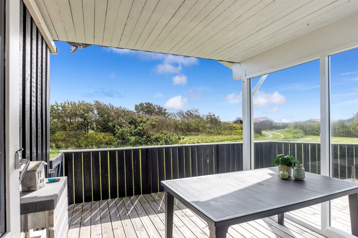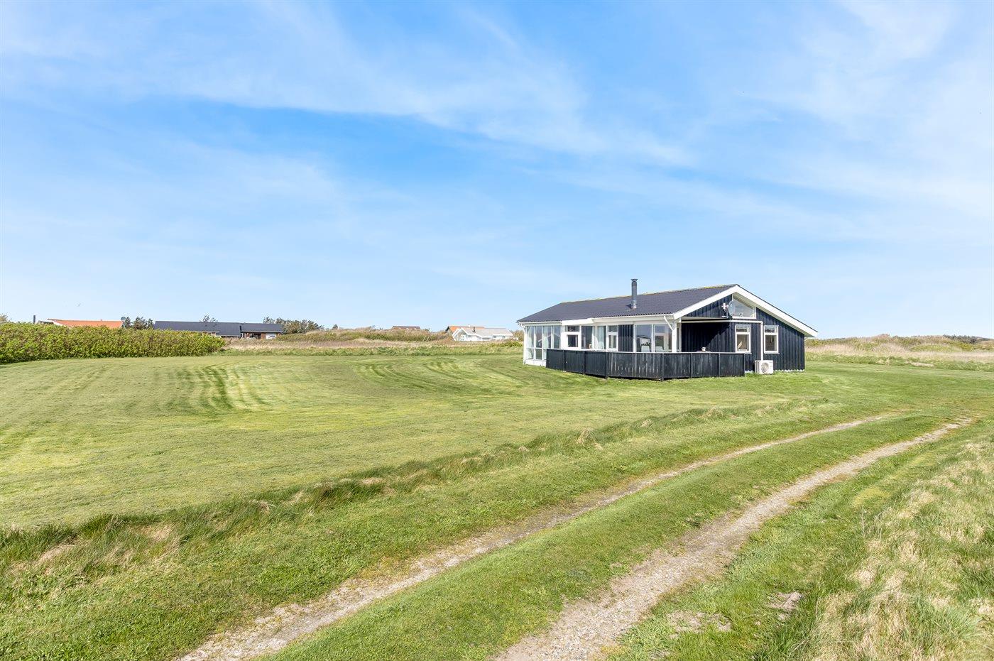 Ferieboligen er beliggende på en 2595 m² stor naturgrund. Der er 300 m til havet. Nærmeste forretning er beliggende i en afstand af 2000 m. Til ferieboligen hører åbent terrasseareal. Desuden er der overdækket terrasse. Udendørs bruser. Grill til rådighed. Der er carport til rådighed. Der er installeret stik til opladning af elbil. Type 2 stik. Parkering ved ferieboligen.