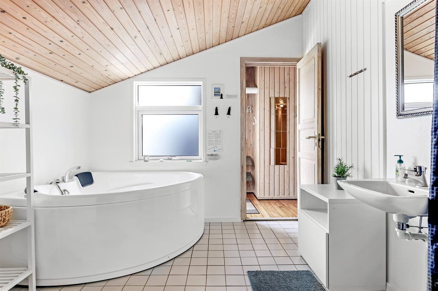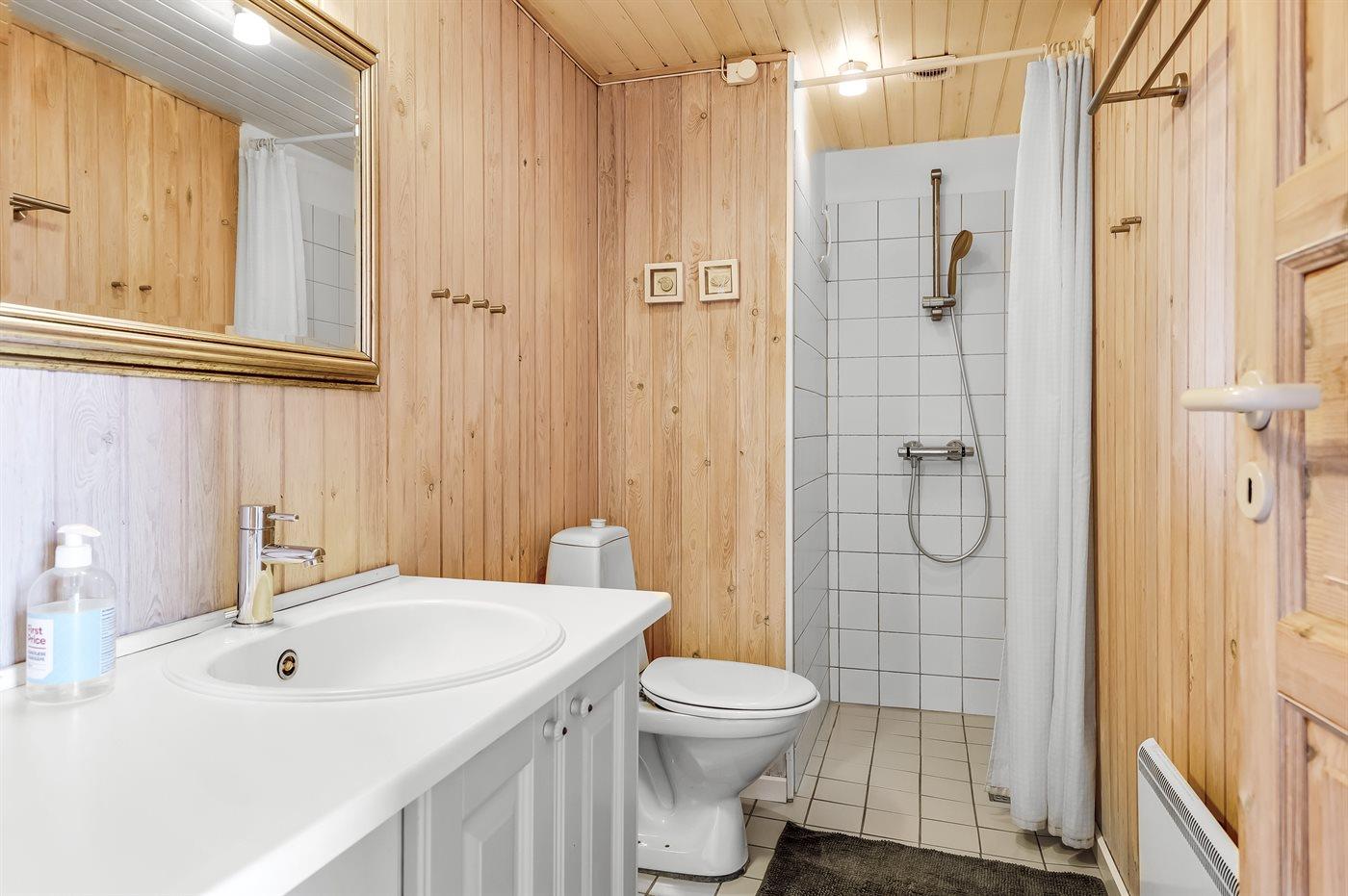 Der er 2 badeværelser med bruseniche og 2 toiletter. Der er gulvvarme på 2 badeværelser. I saunaen er der mulighed for afslapning.