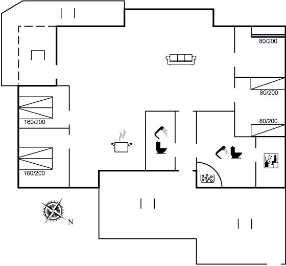 Der er i alt 4 soveværelser. Sovepladserne fordeler sig på: 4 sovepladser i dobbeltsenge. 2 sovepladser i enkeltsenge. 2 sovepladser i køjeseng. Derudover er der 1 stk. barneseng.