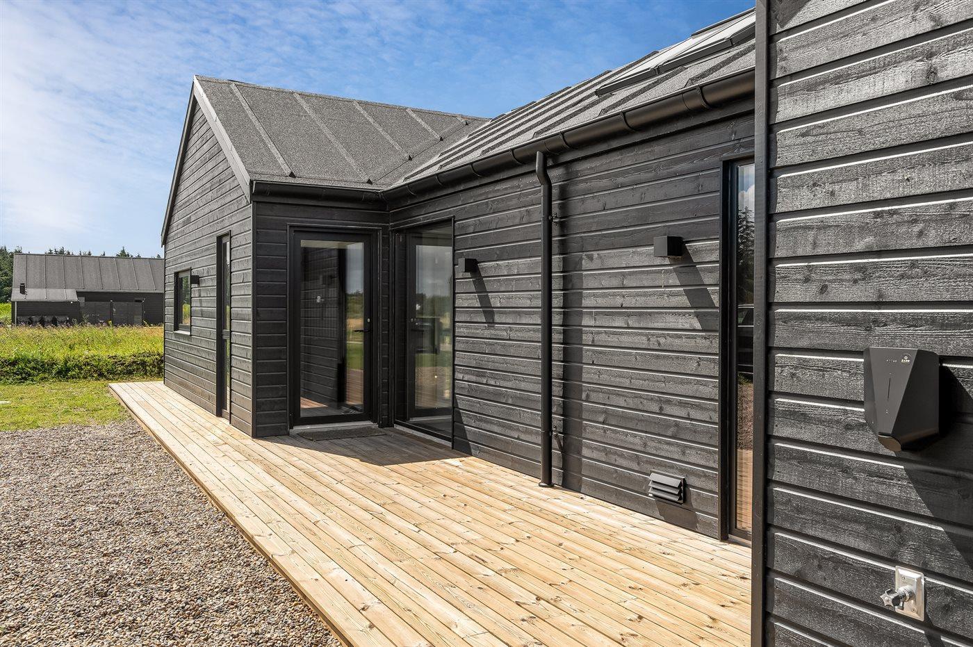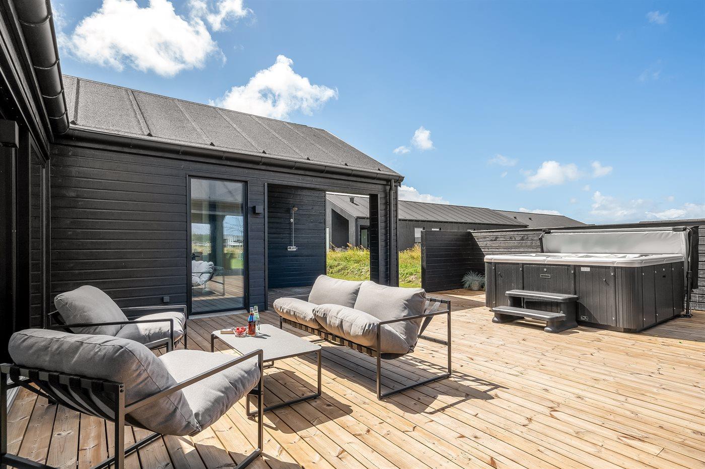 Ferieboligen er beliggende på en 600 m² stor naturgrund. Der er 950 m til havet. Nærmeste forretning er beliggende i en afstand af 800 m. Til ferieboligen hører åbent terrasseareal. Desuden er der overdækket terrasse. Der er redskabsrum. Udendørs bruser. Grill til rådighed. Der er installeret stik til opladning af elbil. Parkering ved ferieboligen.