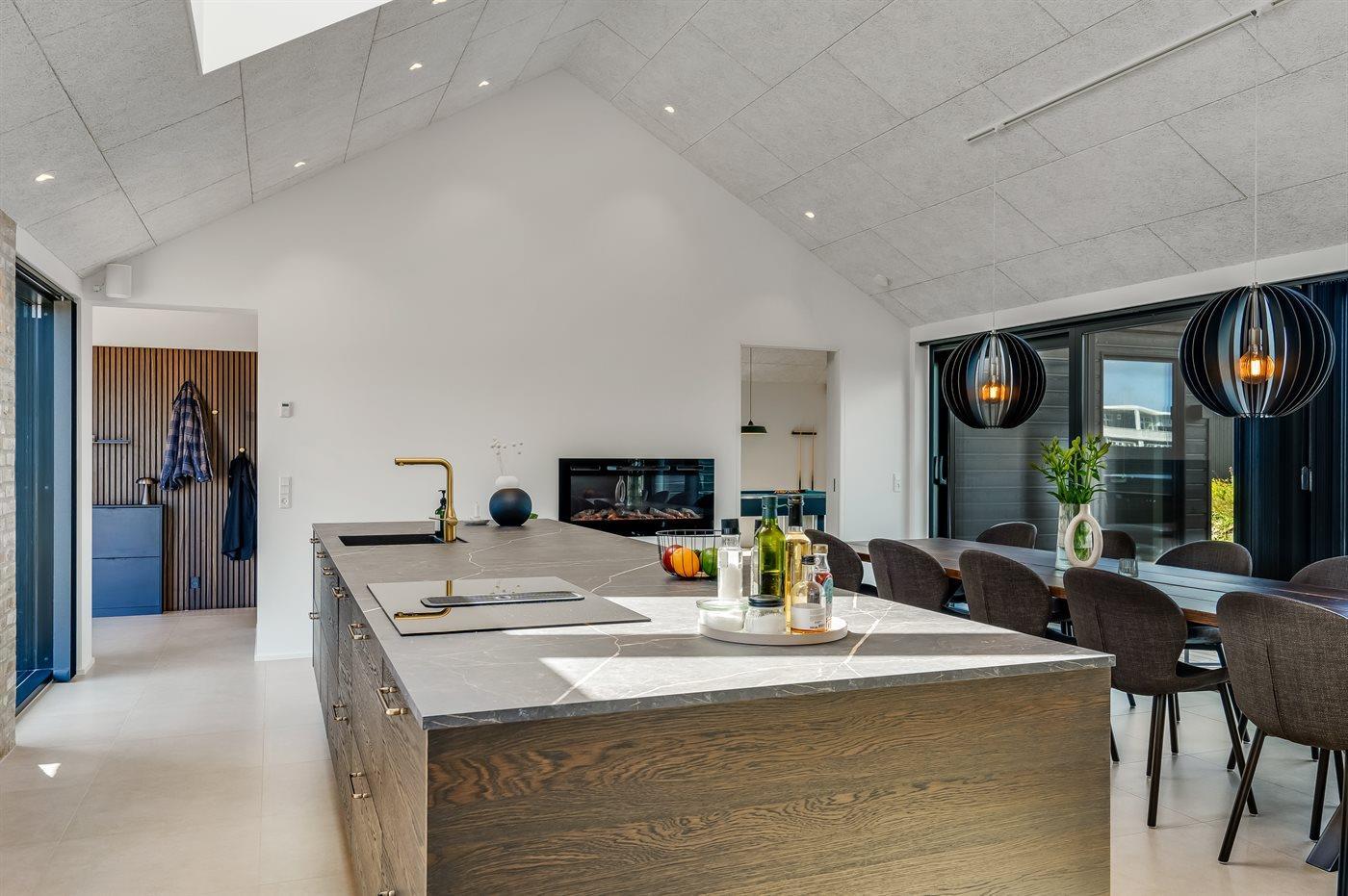 Køkkenet er udstyret med 1 køleskab. Der er 4 induktionskogeplader, varmluftovn, mikrobølgeovn samt opvaskemaskine.