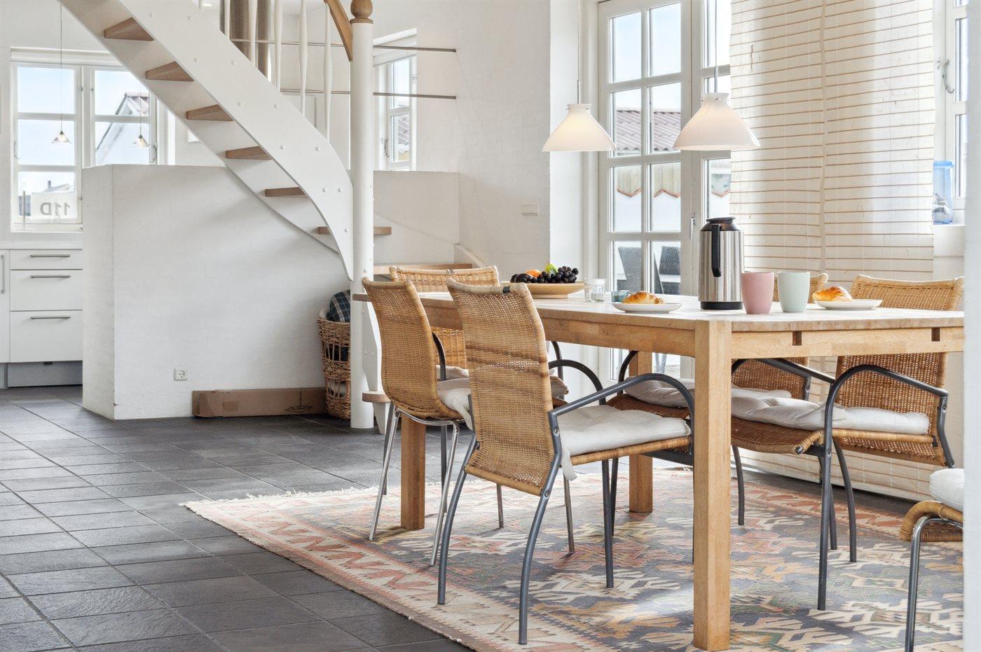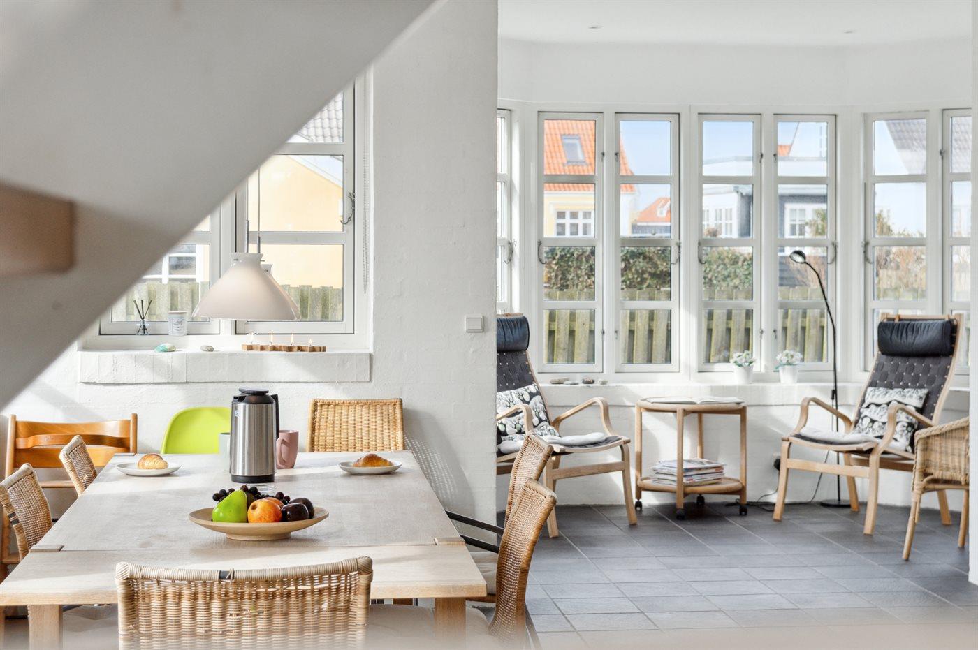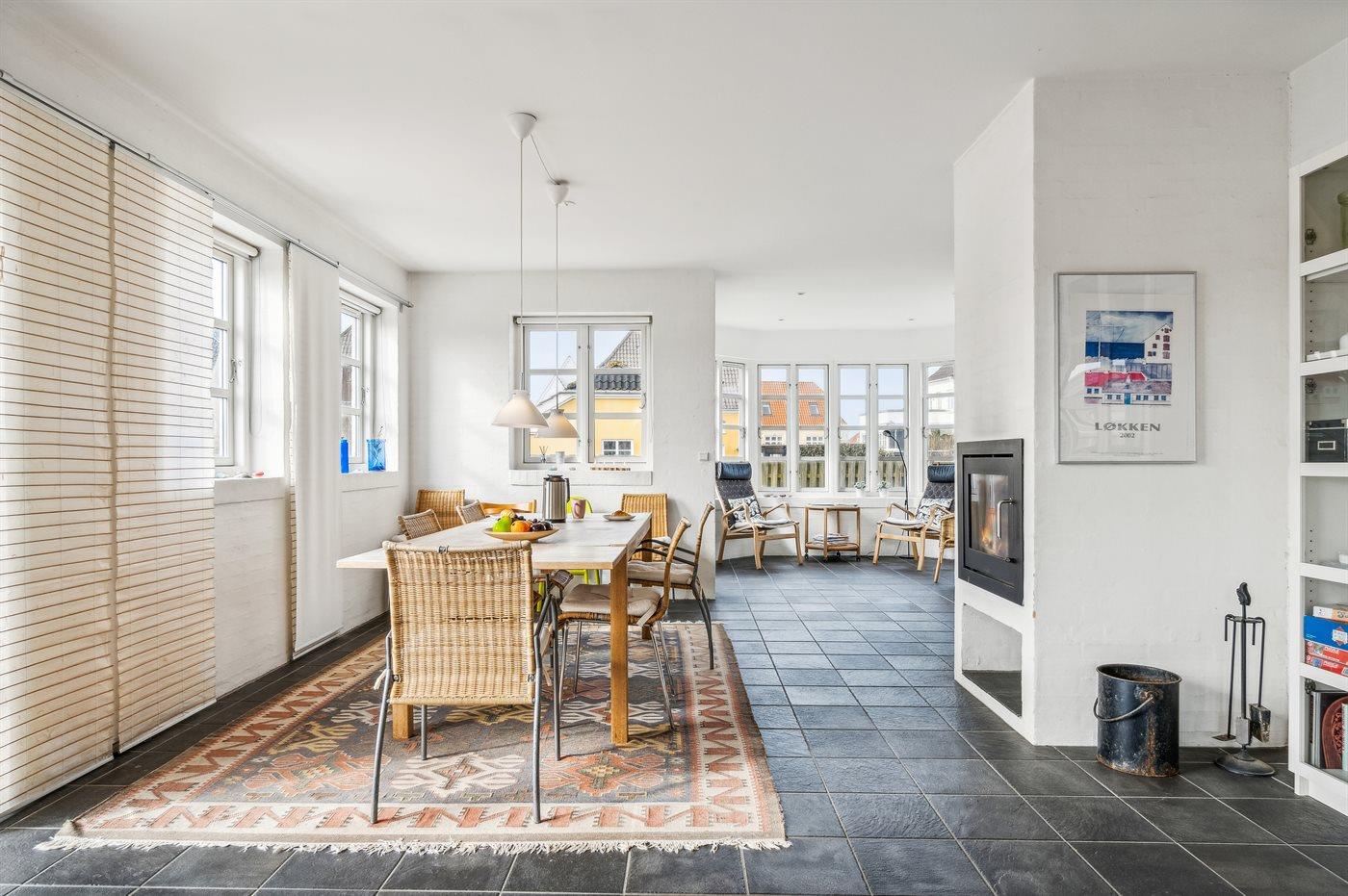Skønt to etagers hus centralt beliggende i Løkken i gåafstand til både den hyggelige bymidte med cafeer og restauranter, den fine badestrand og det brusende Vesterhav. Sidstnævnte kan endda ses fra husets 1. sal. Her får man et solidt hus med plads og rum til den udvidede børnefamilie eller en gruppe vennepar – og dette uanset, om det er sommer eller vinter.