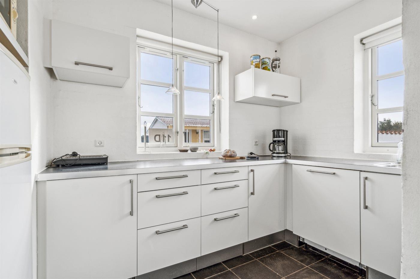 Køkkenet er udstyret med 1 køleskab. Der er 4 keramiske kogeplader, varmluftovn, mikrobølgeovn samt opvaskemaskine.