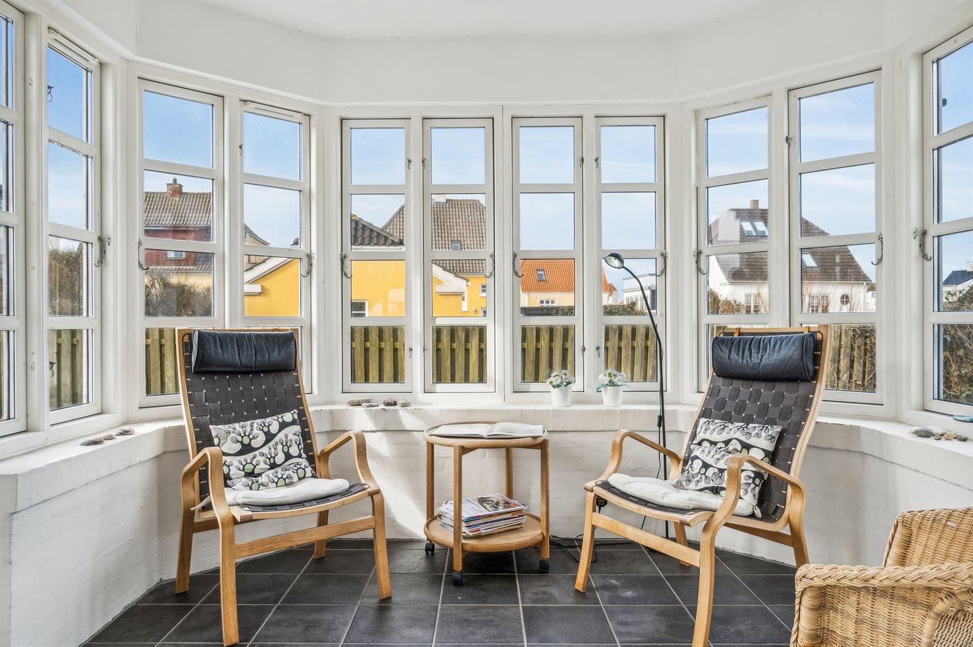 Den tilhørende have er fuldt indhegnet, så der er styr på de små i familien, mens livet nydes på terrassen.