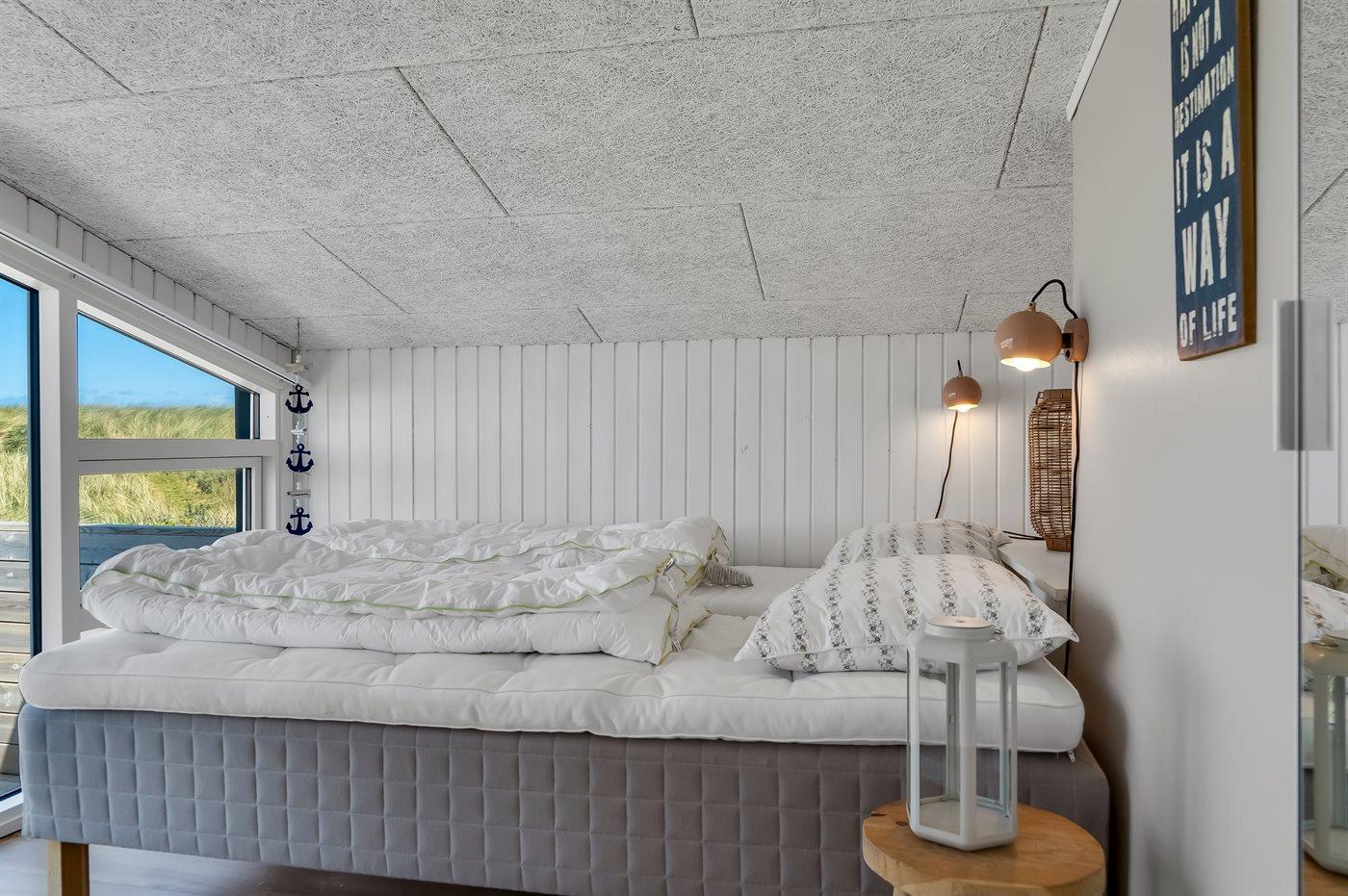 Der er i alt 1 soveværelse. Sovepladserne fordeler sig på: 2 sovepladser i dobbeltseng. 2 sovepladser i alkove. 2 af disse sovepladser befinder sig i stuen.