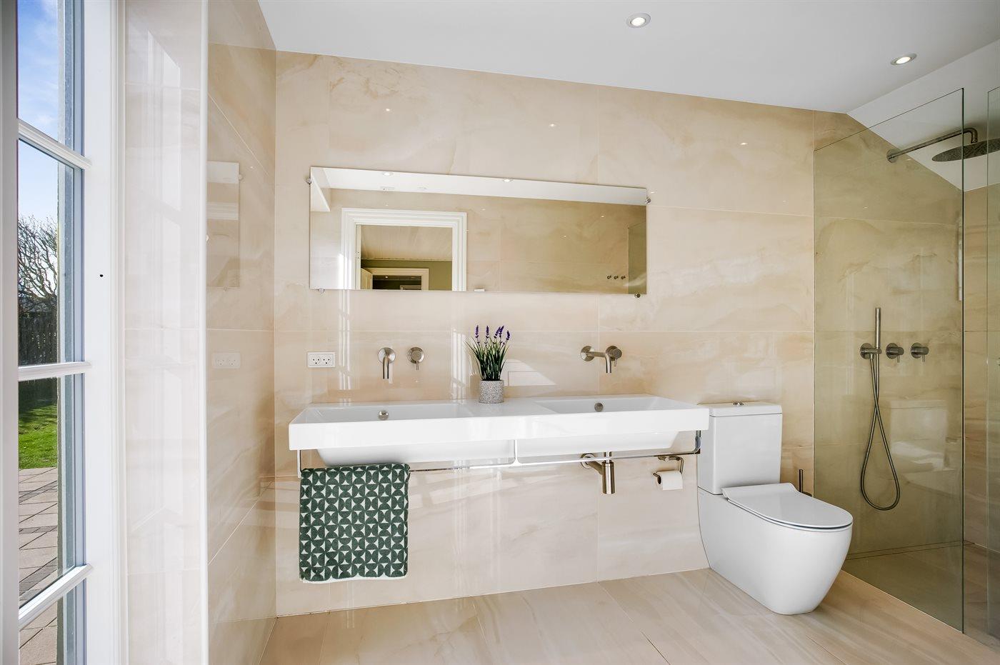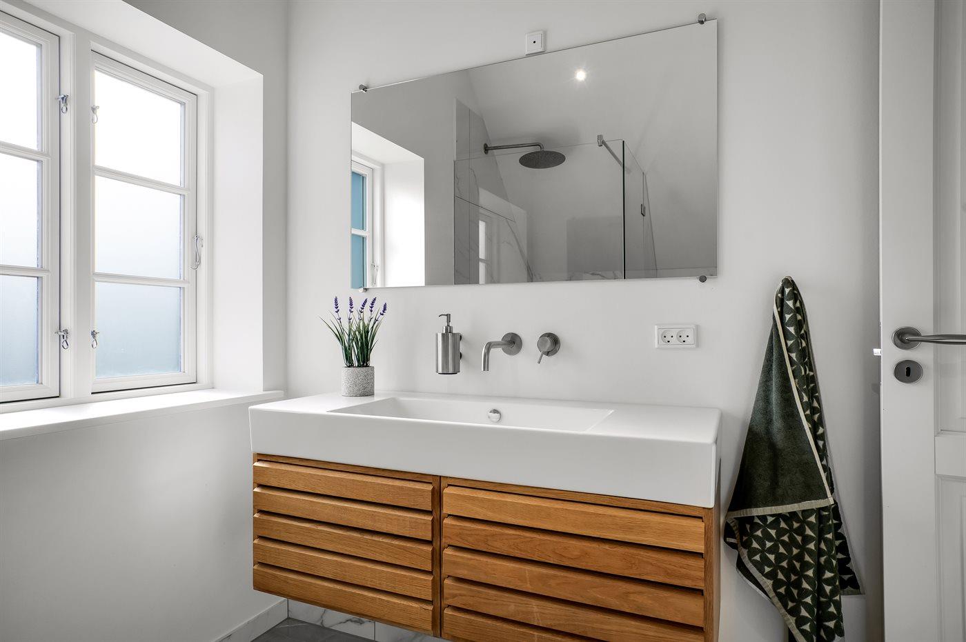 Der er 2 badeværelser med bruseniche og 3 toiletter, heraf 1 gæstetoilet. Der er gulvvarme på 2 badeværelser. Der er gulvvarme på gæstetoilettet.