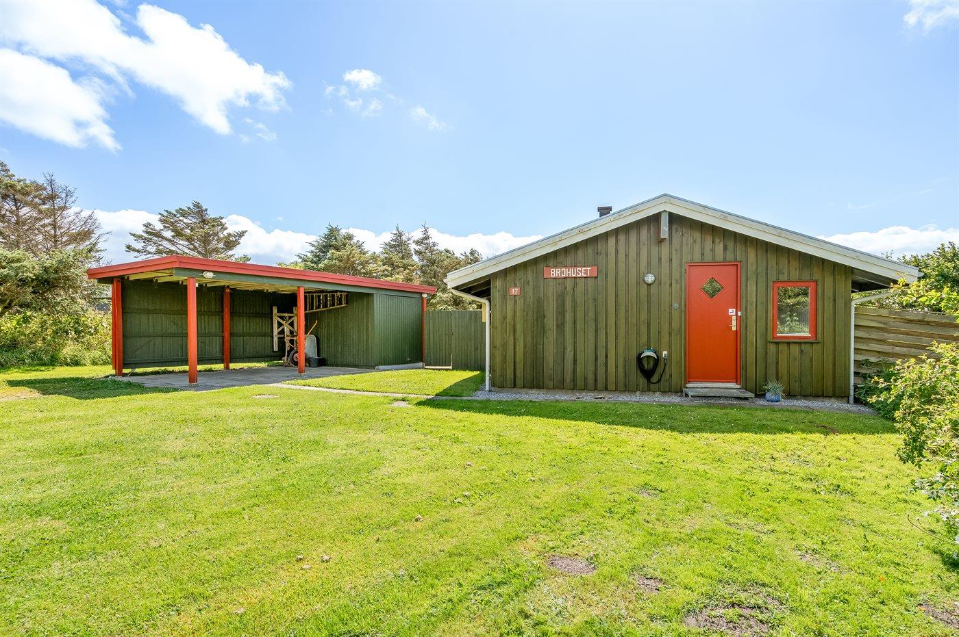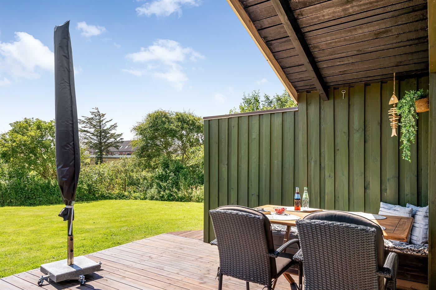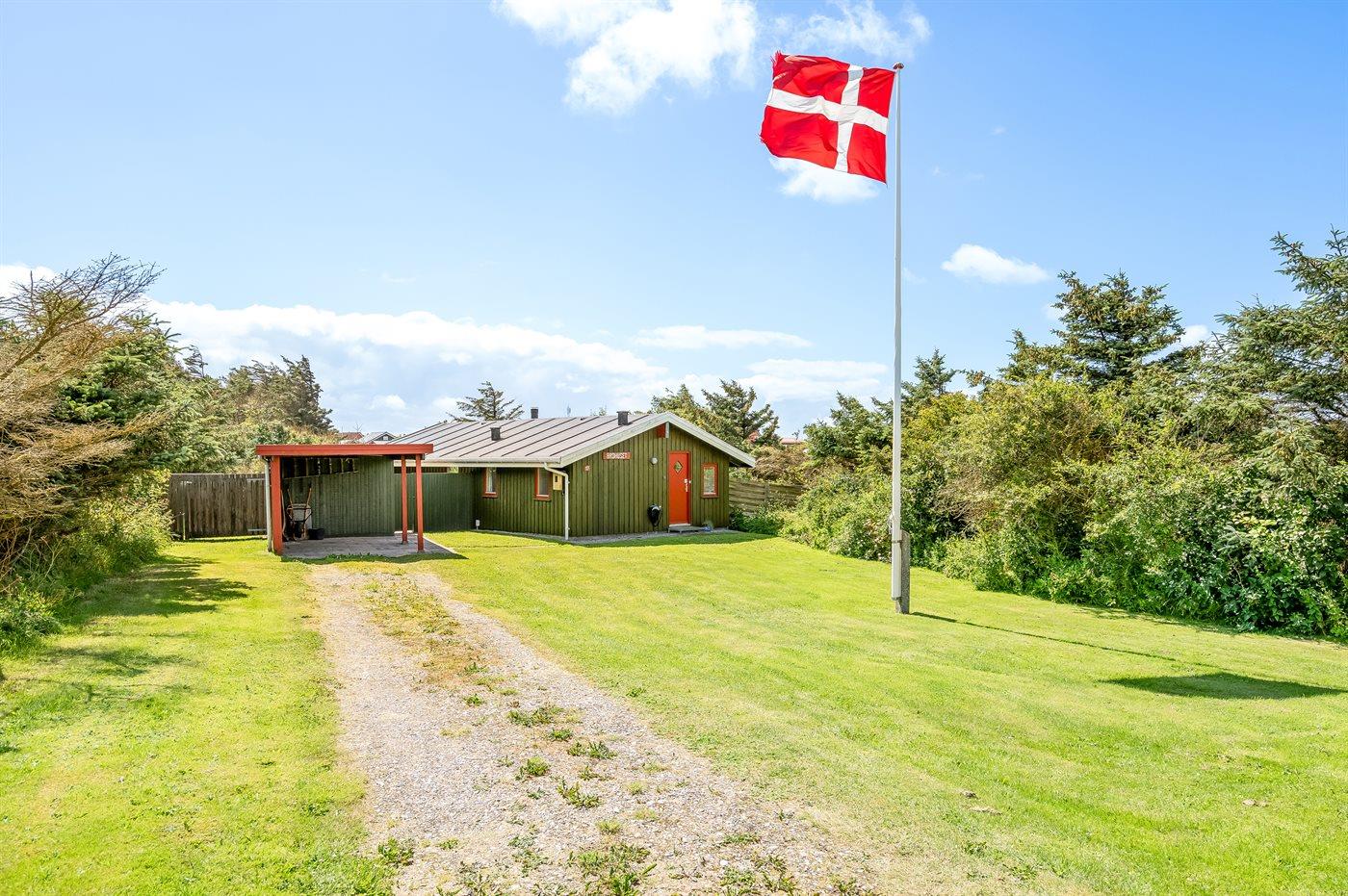 Ferieboligen er beliggende på en 1500 m² stor naturgrund. Grunden er indhegnet. Der er 600 m til havet. Nærmeste forretning er beliggende i en afstand af 400 m. Til ferieboligen hører åbent terrasseareal. Desuden er der overdækket terrasse. Der er redskabsrum. Grill til rådighed. Parkering ved ferieboligen.