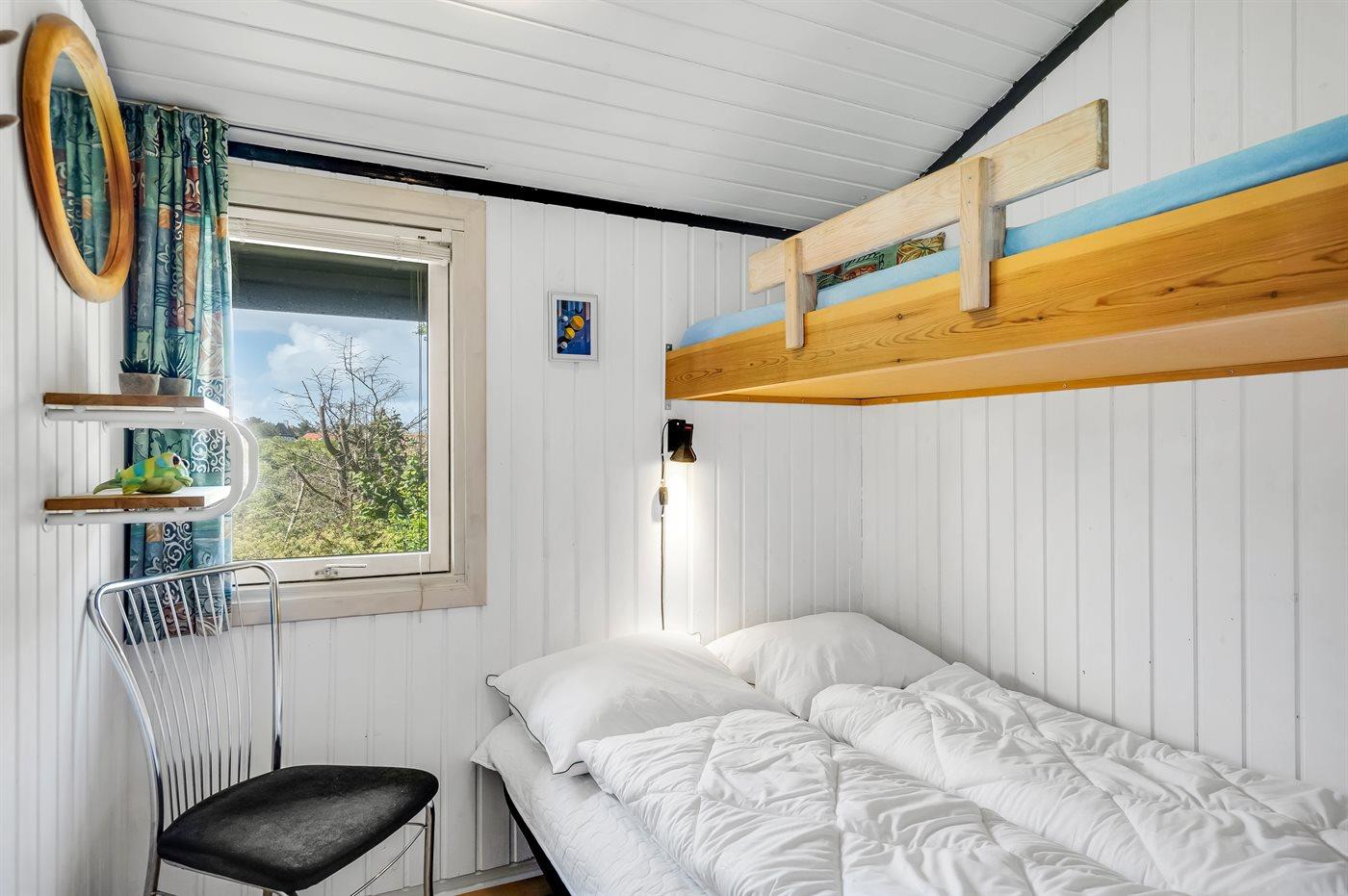Der er i alt 3 soveværelser. Sovepladserne fordeler sig på: 6 sovepladser i dobbeltsenge. 2 sovepladser i enkeltsenge.