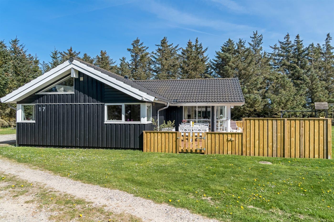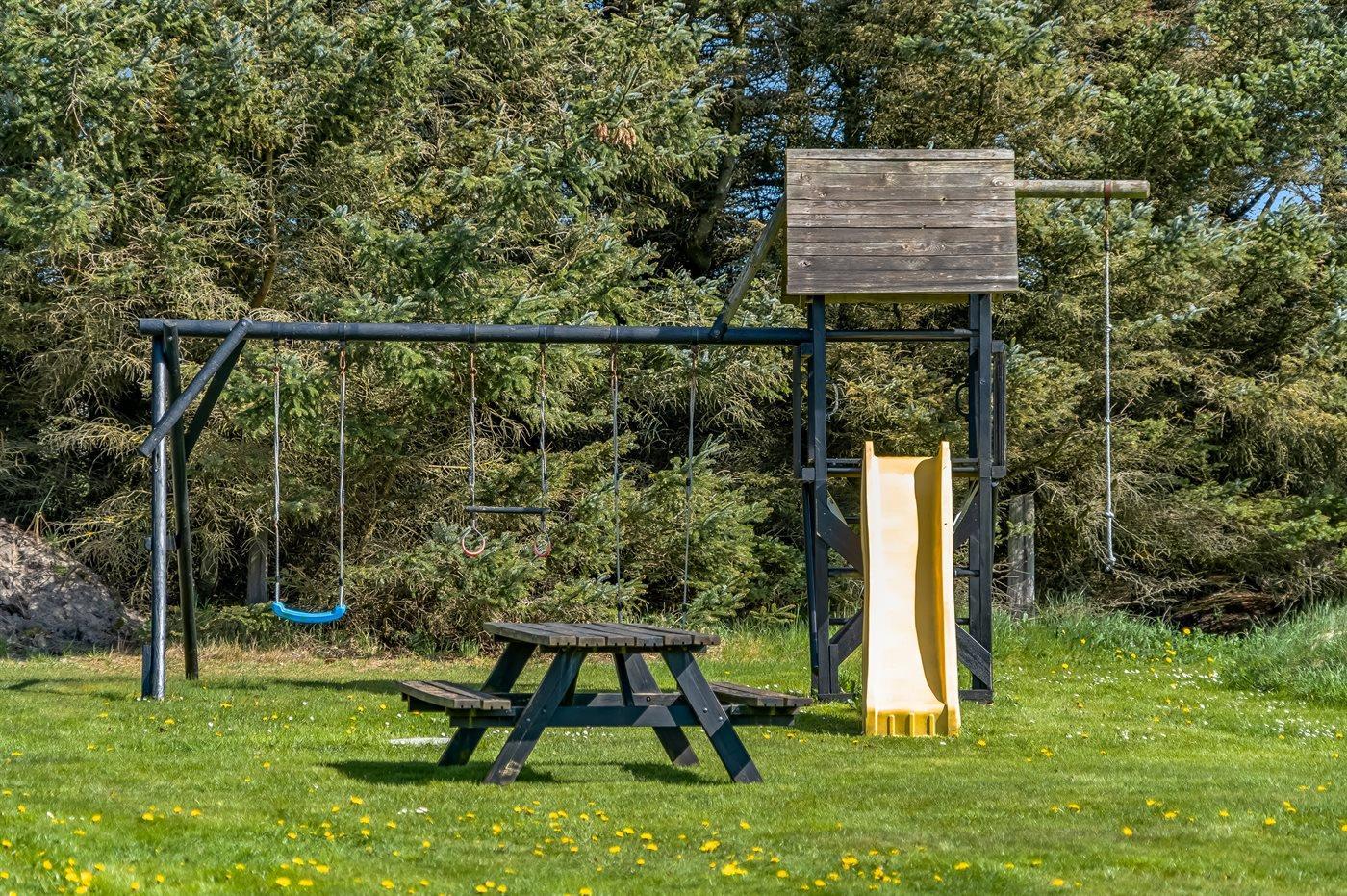 Ferieboligen er beliggende på en 2500 m² stor naturgrund. Der er 1000 m til havet. Nærmeste forretning er beliggende i en afstand af 3000 m. Til ferieboligen hører 1 m² terrasseareal. Til ferieboligen hører åbent terrasseareal. Desuden er der overdækket terrasse. Der er 150 m2 indhegnet terrasse, hvor hegnet er 75 cm høj. Gynge. Trampolin. Legetårn. Rutchebane. Fodboldmål. Grill til rådighed. Der er installeret stik til opladning af elbil. Parkering ved ferieboligen.