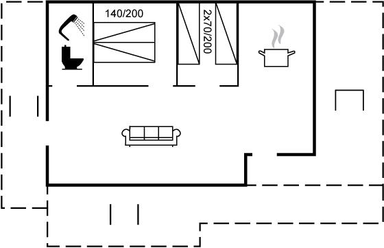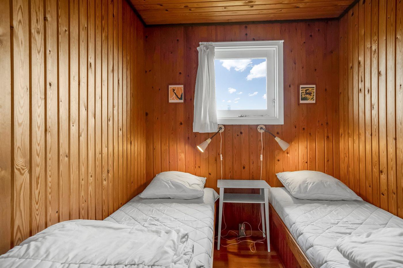 Der er i alt 2 soveværelser. Sovepladserne fordeler sig på: 2 sovepladser i dobbeltseng. 2 sovepladser i enkeltsenge.