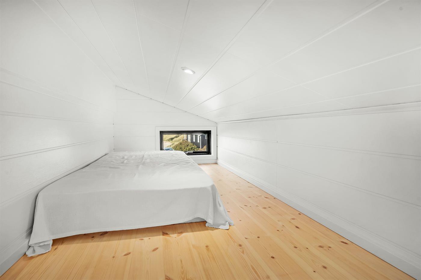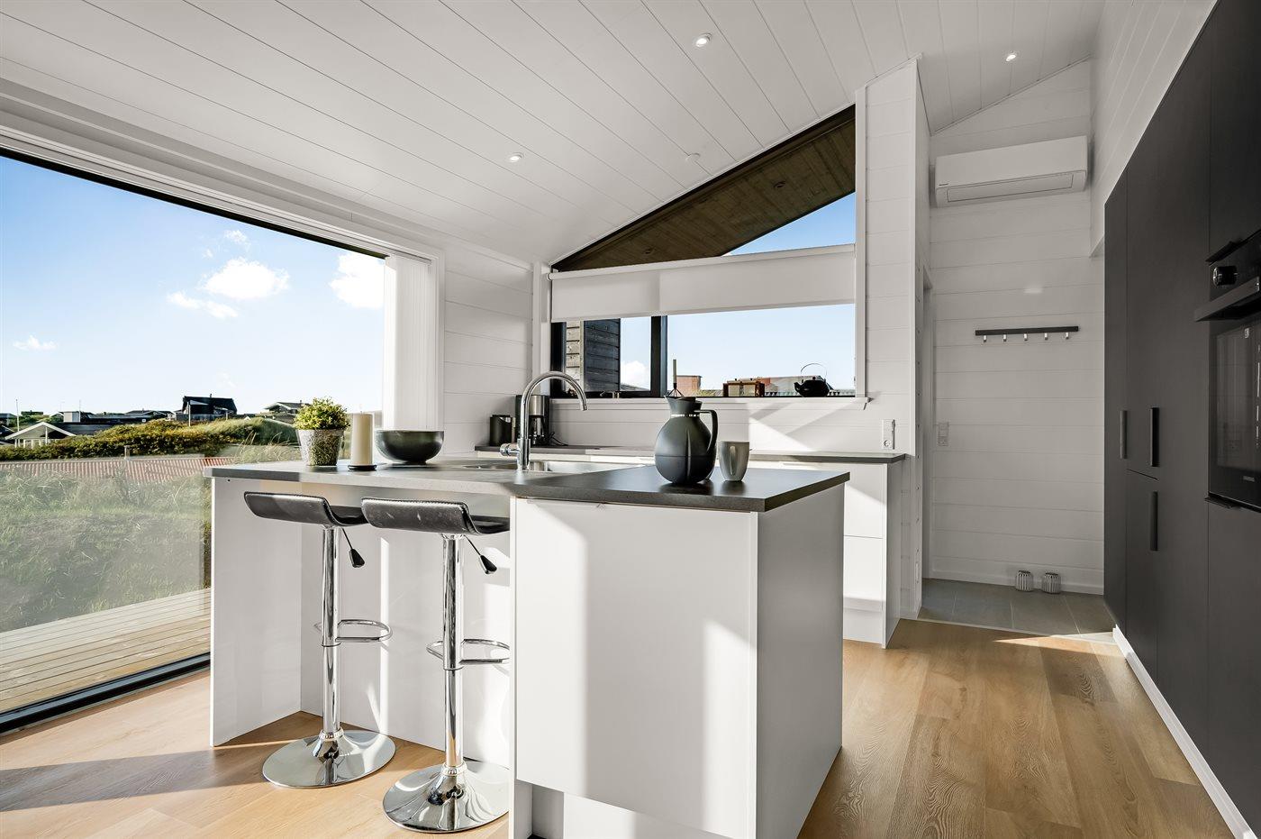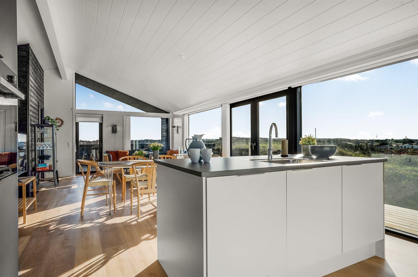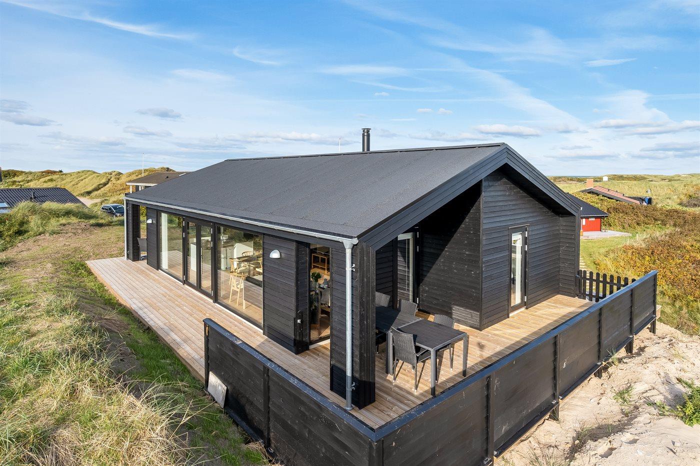 Et nybygget sommerhus, som ligger få skridt fra stranden og har en fantastisk udsigt over de charmerende sommerhuse i Løkken.