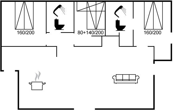 Der er i alt 3 soveværelser. Sovepladserne fordeler sig på: 4 sovepladser i dobbeltsenge. 3 sovepladser i køjesenge.