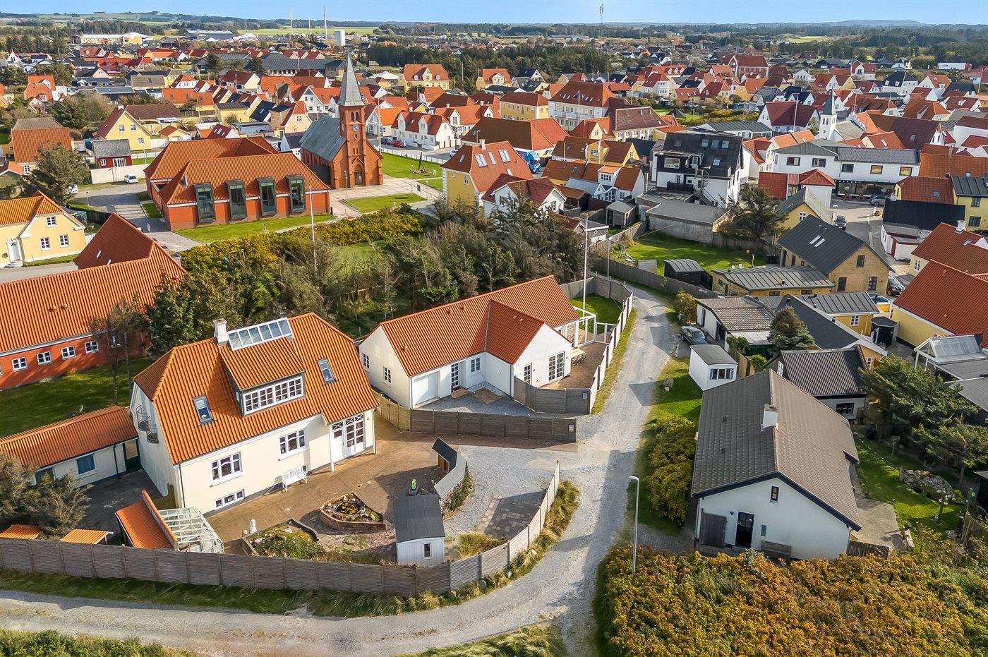 Når du har sat bilen ved ankomst til feriehuset, er det ikke nødvendigt at bruge den før afrejse. Med 3 minutters afstand til vandet og endnu kortere afstand til restaurant, behøver du ikke nogen form for transport. Huset ligger ugenert på en blind vej med kun 10 huse. Grunden er indhegnet, så det er trygt med både børn og hunde - og det er det også, når I går tur på den bilfrie strand.