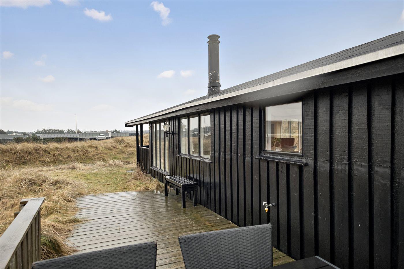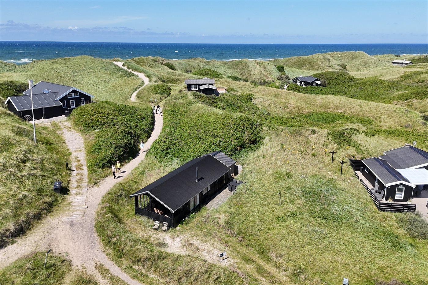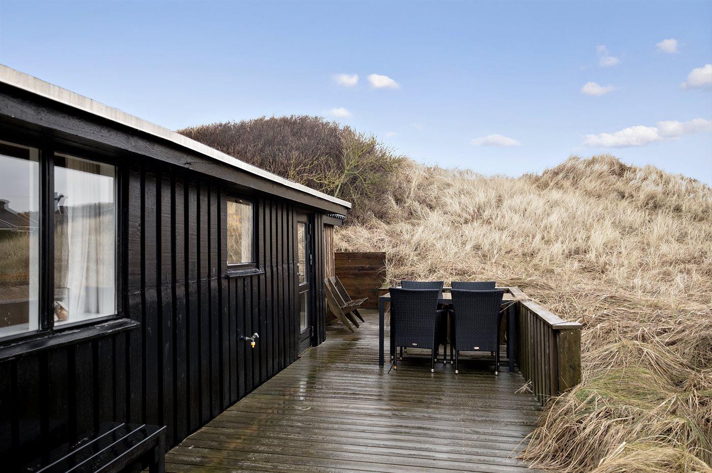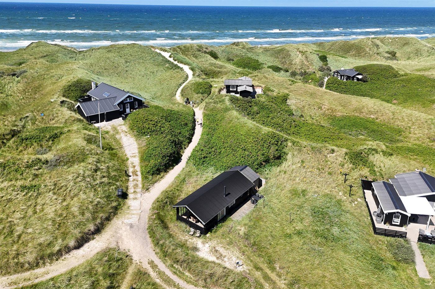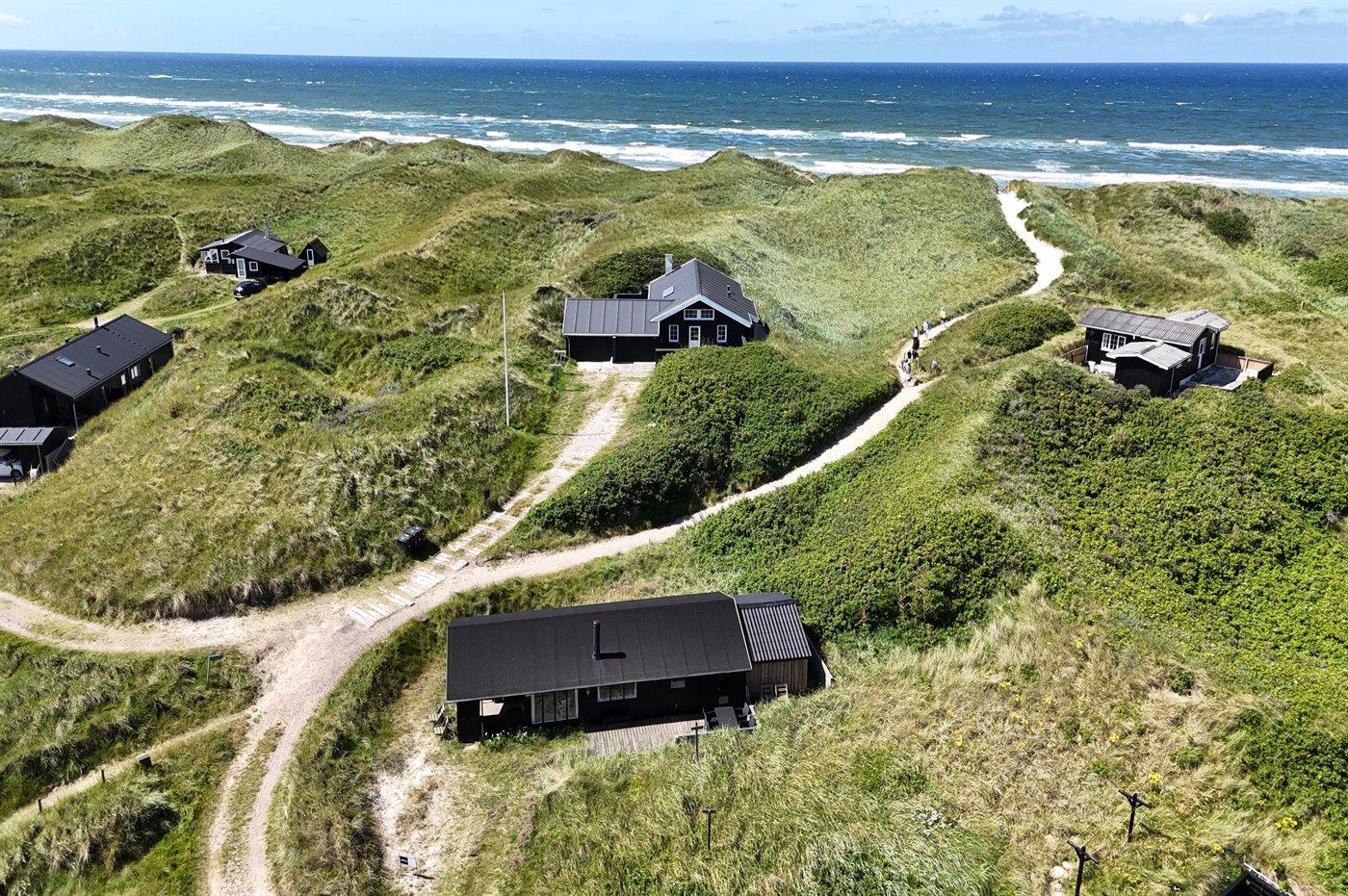 Ferieboligen er beliggende på en 1504 m² stor klitgrund. Der er 120 m til havet. Nærmeste forretning er beliggende i en afstand af 2500 m. Til ferieboligen hører åbent terrasseareal. Desuden er der overdækket terrasse. Grill til rådighed. Parkering ved ferieboligen.