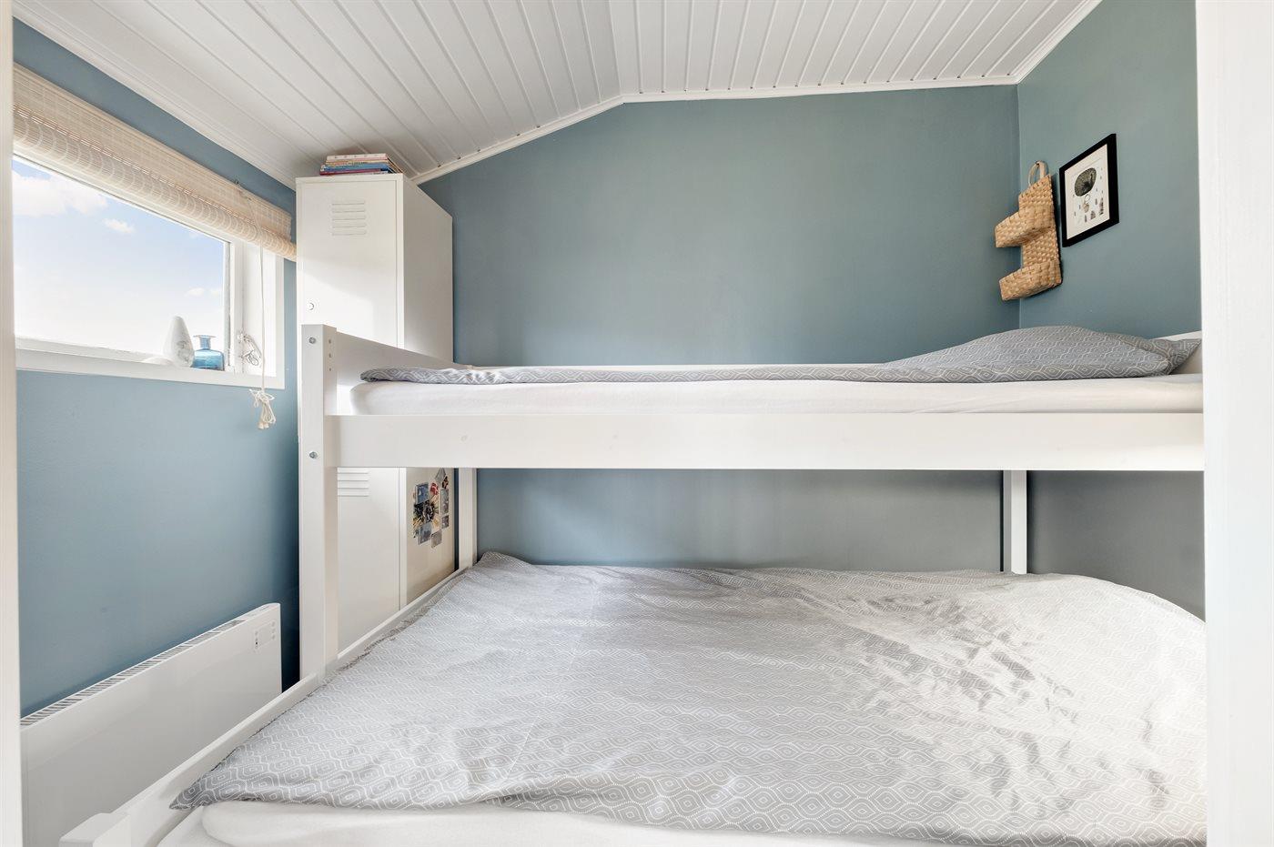 Der er i alt 2 soveværelser. Sovepladserne fordeler sig på: 4 sovepladser i dobbeltsenge.1 soveplads i køjeseng.
