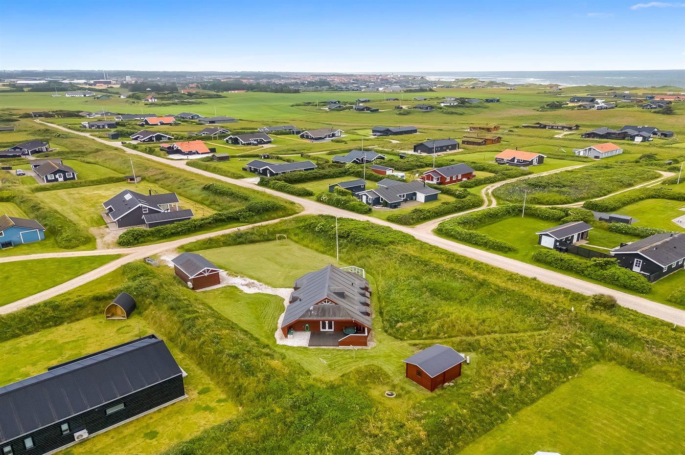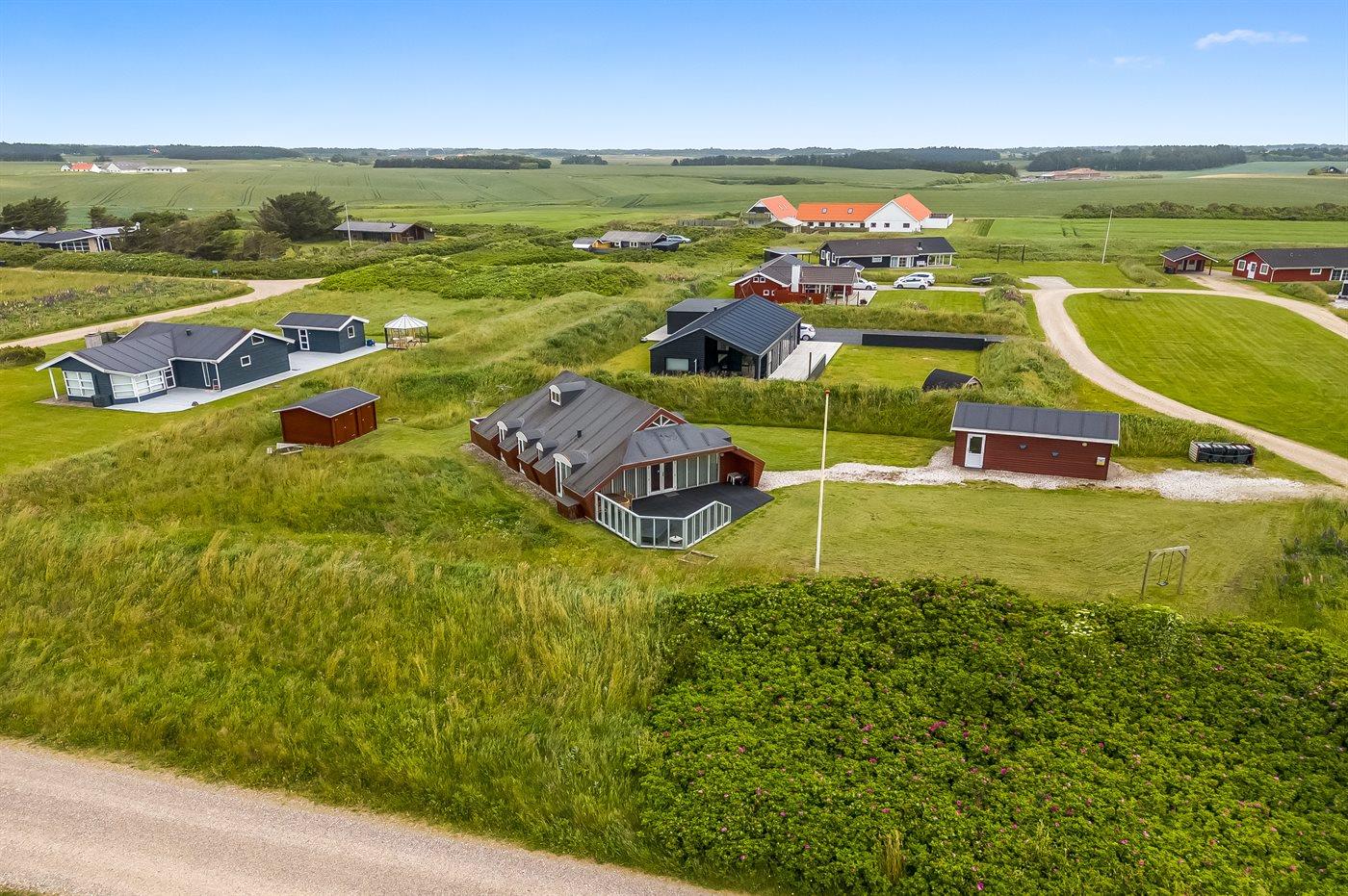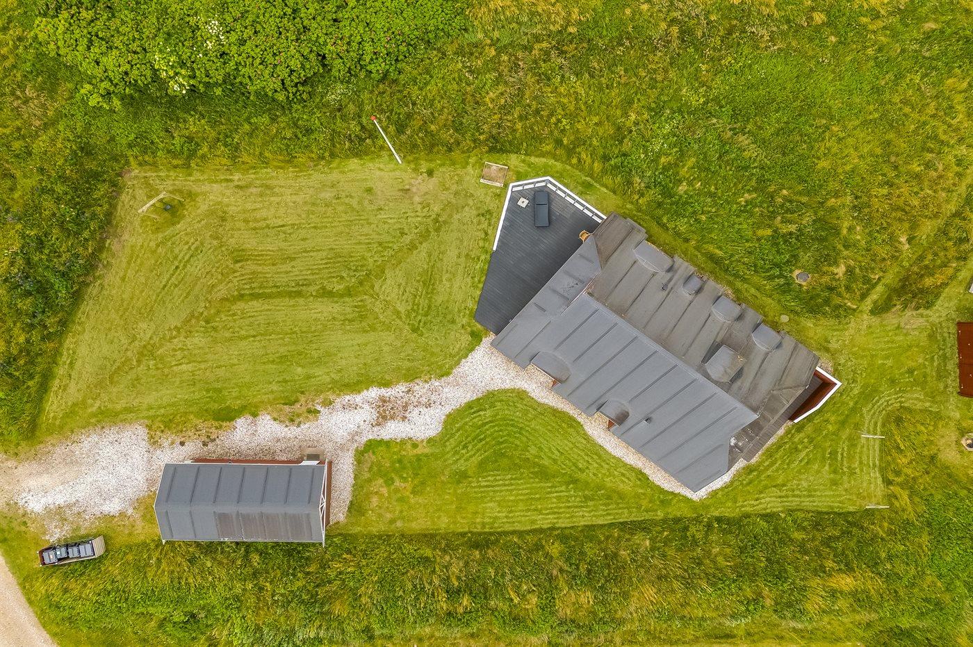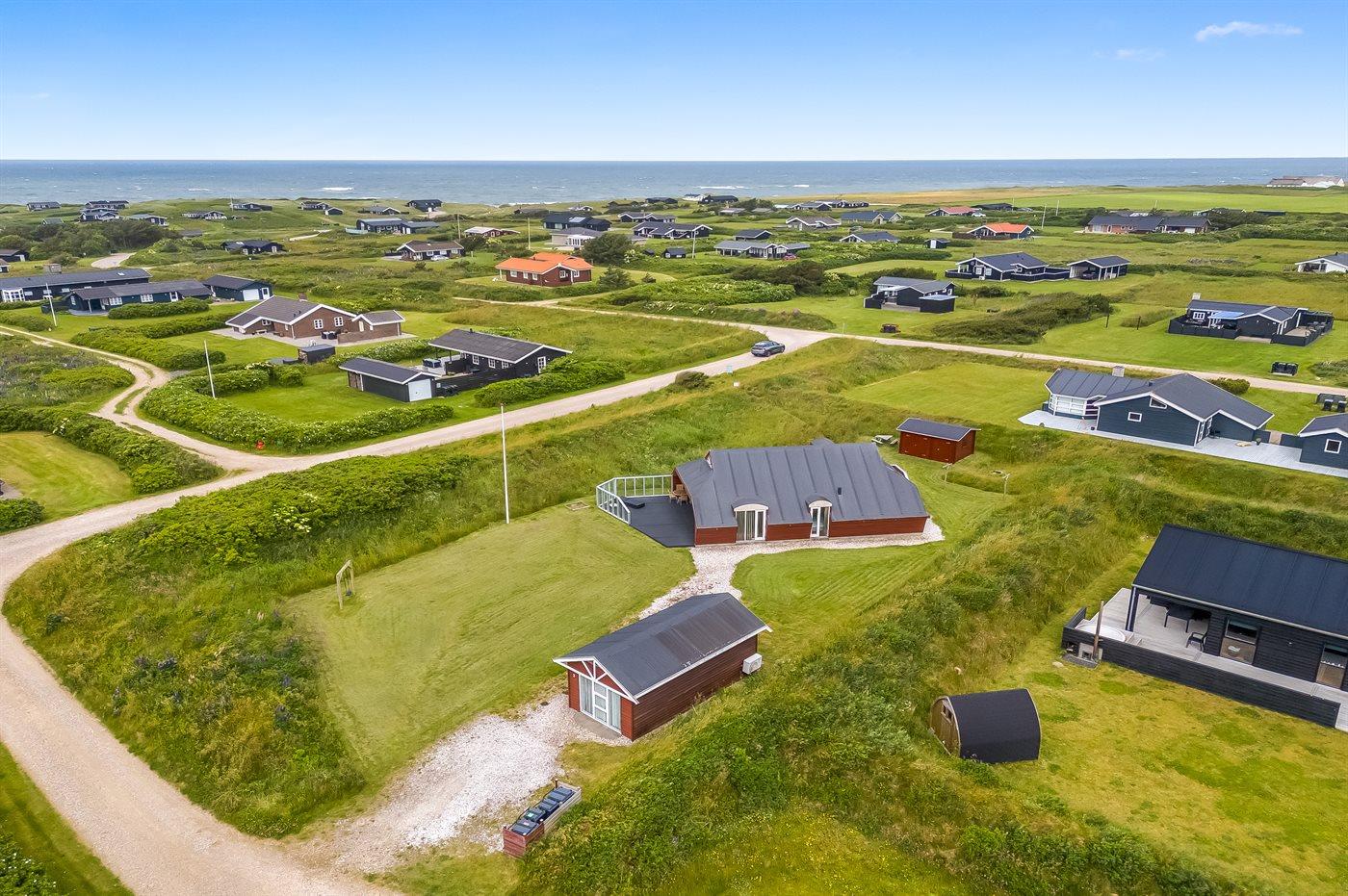 Ferieboligen er beliggende på en 1260 m² stor naturgrund. Der er 500 m til havet. Nærmeste forretning er beliggende i en afstand af 1700 m. Til ferieboligen hører åbent terrasseareal. Desuden er der overdækket terrasse. Der er redskabsrum. Gynge. Sandkasse. Grill til rådighed. Parkering ved ferieboligen.