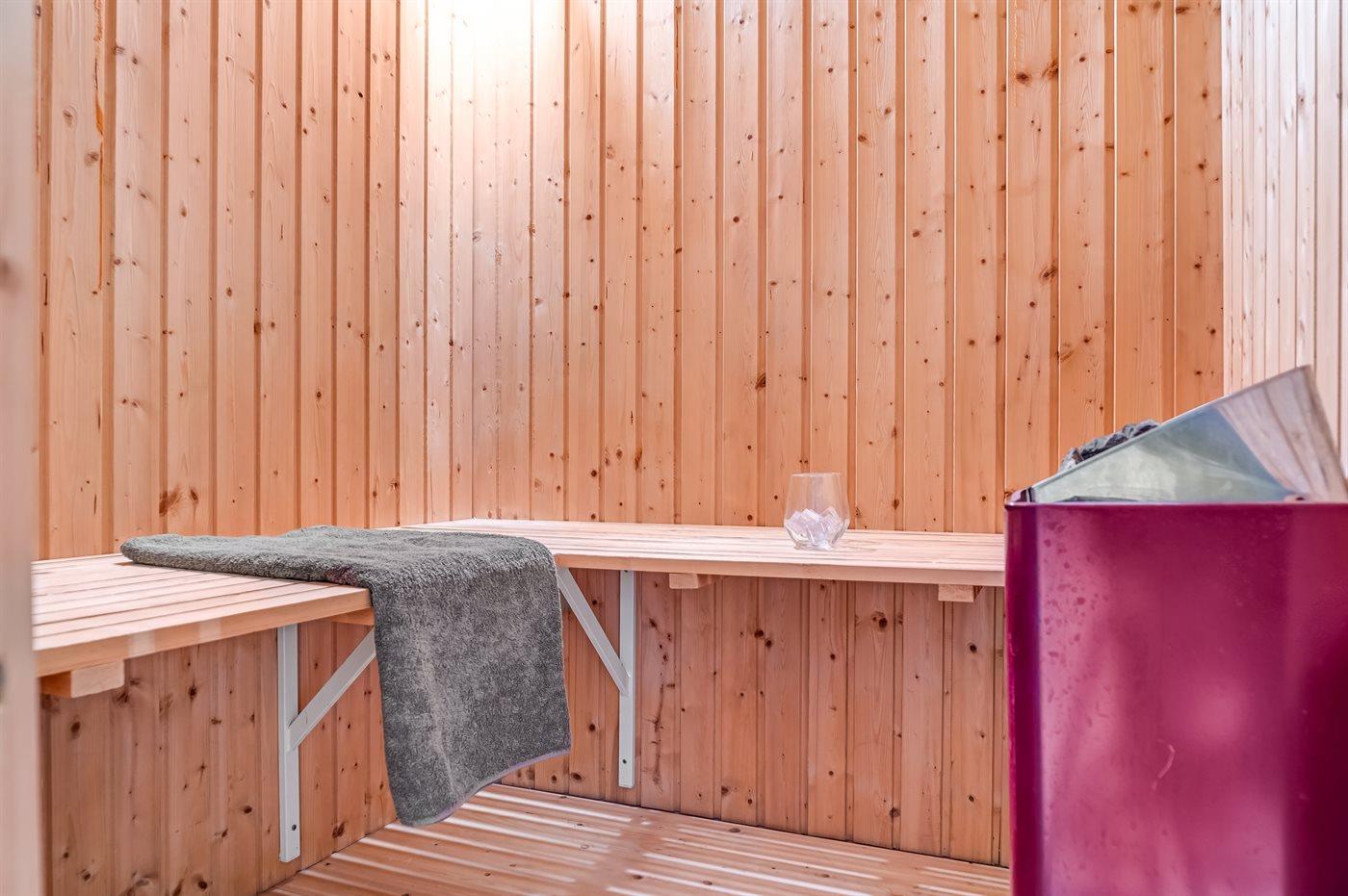 Der er 1 badeværelse med bruseniche og 1 toilet.. Der er gulvvarme på 1 badeværelse. I saunaen er der mulighed for afslapning.