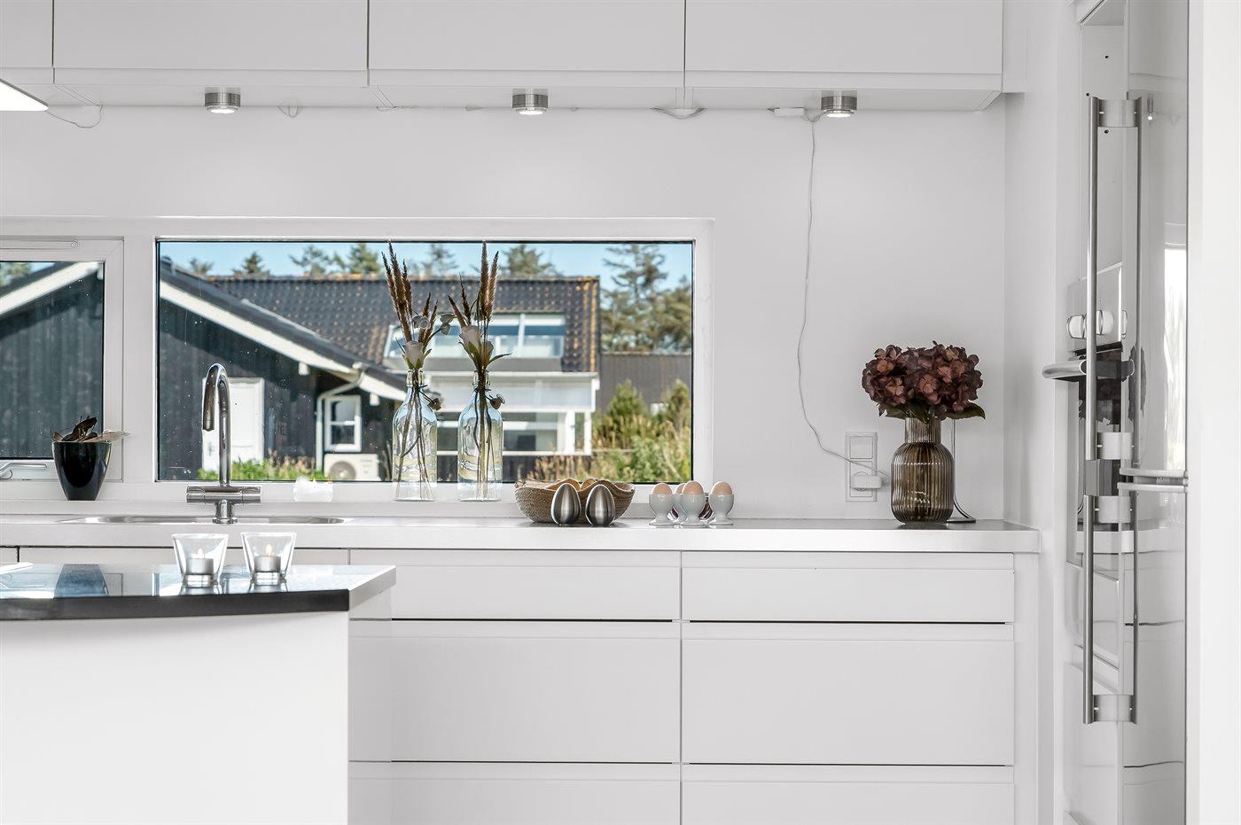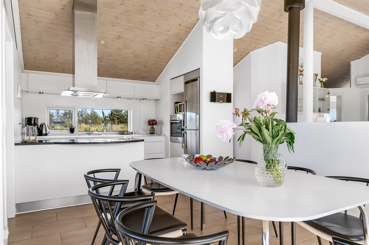 Køkkenet er udstyret med 1 køleskab. Der er 4 keramiske kogeplader, varmluftovn, mikrobølgeovn samt opvaskemaskine.