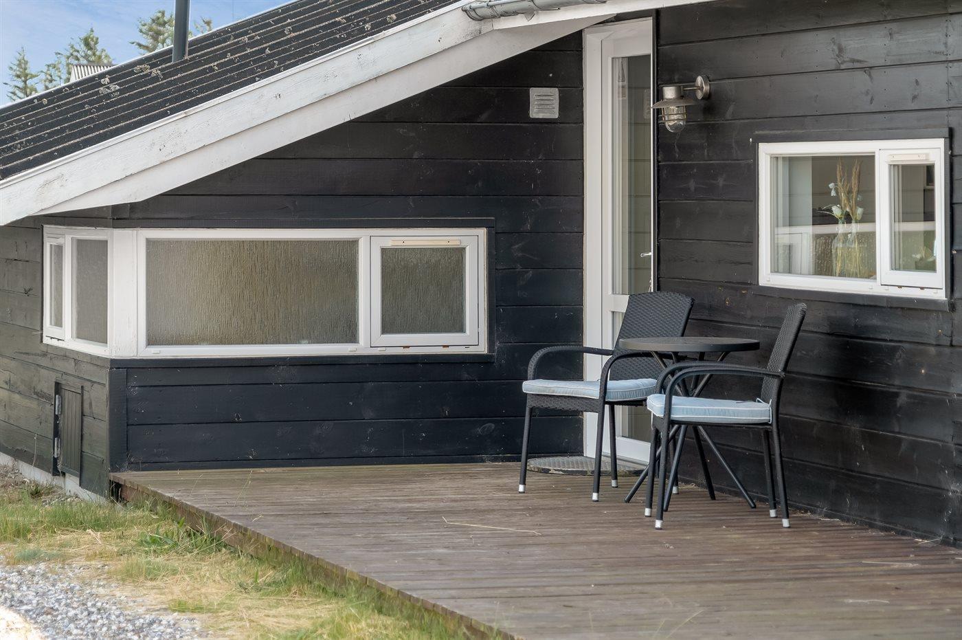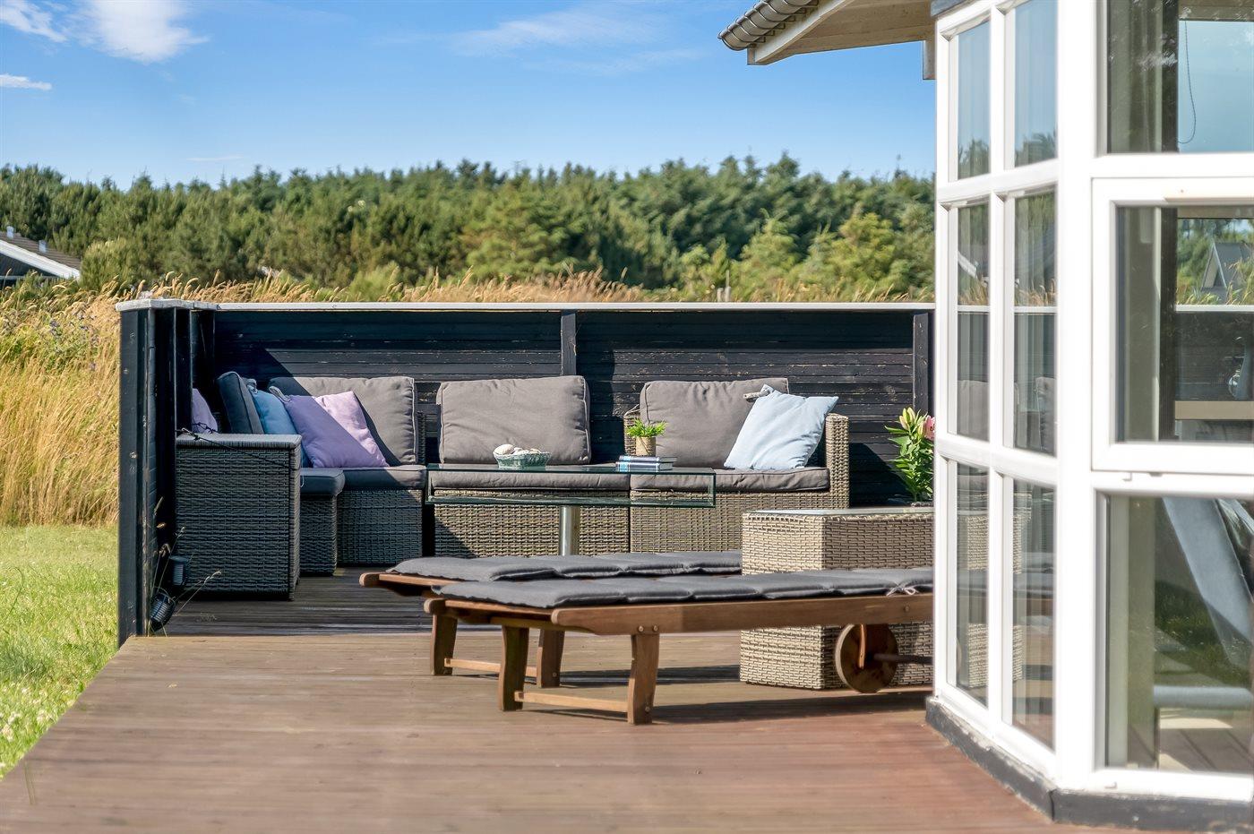 Ferieboligen er beliggende på en 2550 m² stor naturgrund. Der er 800 m til havet. Nærmeste forretning er beliggende i en afstand af 2000 m. Til ferieboligen hører åbent terrasseareal. Desuden er der overdækket terrasse. Der er redskabsrum. Gynge. Sandkasse. Bålsted. Grill til rådighed.