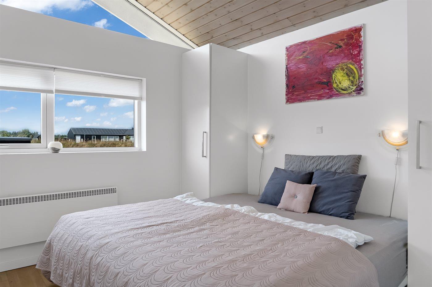 Der er i alt 3 soveværelser. Sovepladserne fordeler sig på: 4 sovepladser i dobbeltsenge. 3 sovepladser i køjesenge. 1 soveplads på madras. 1 af disse sovepladser befinder sig på husets hems.