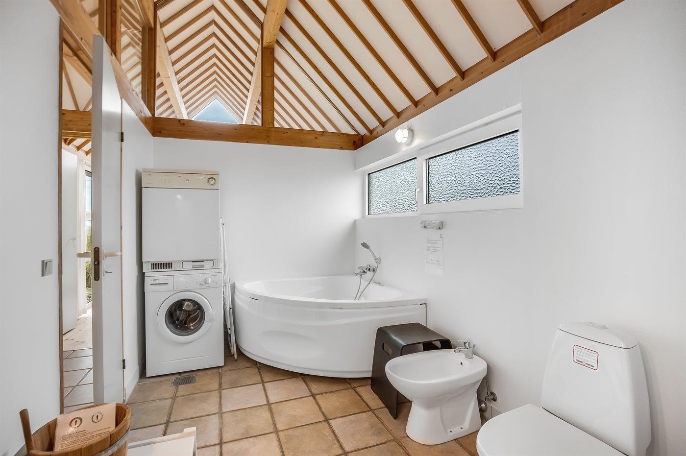 Der er 2 badeværelser med bruseniche og 2 toiletter. Der er gulvvarme på 2 badeværelser. I saunaen er der mulighed for afslapning.