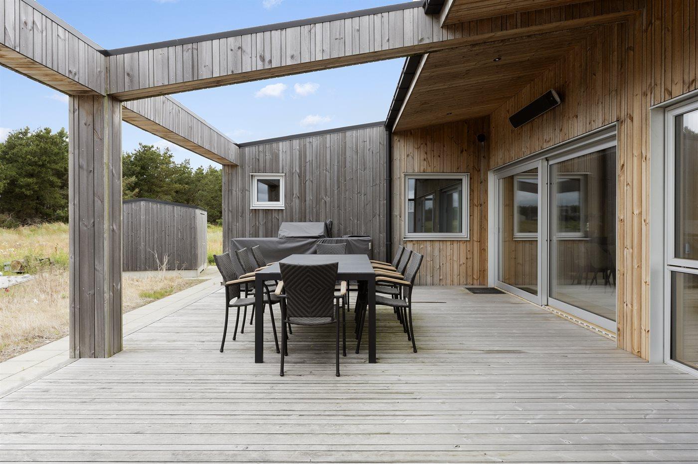 Ferieboligen er beliggende på en 627 m² stor havegrund. Der er 1000 m til havet. Nærmeste forretning er beliggende i en afstand af 250 m. Til ferieboligen hører åbent terrasseareal. Desuden er der overdækket terrasse. Udendørs bruser. Der er mulighed for at tilberede maden udendørs i udekøkkenet. Grill til rådighed. Parkering ved ferieboligen.