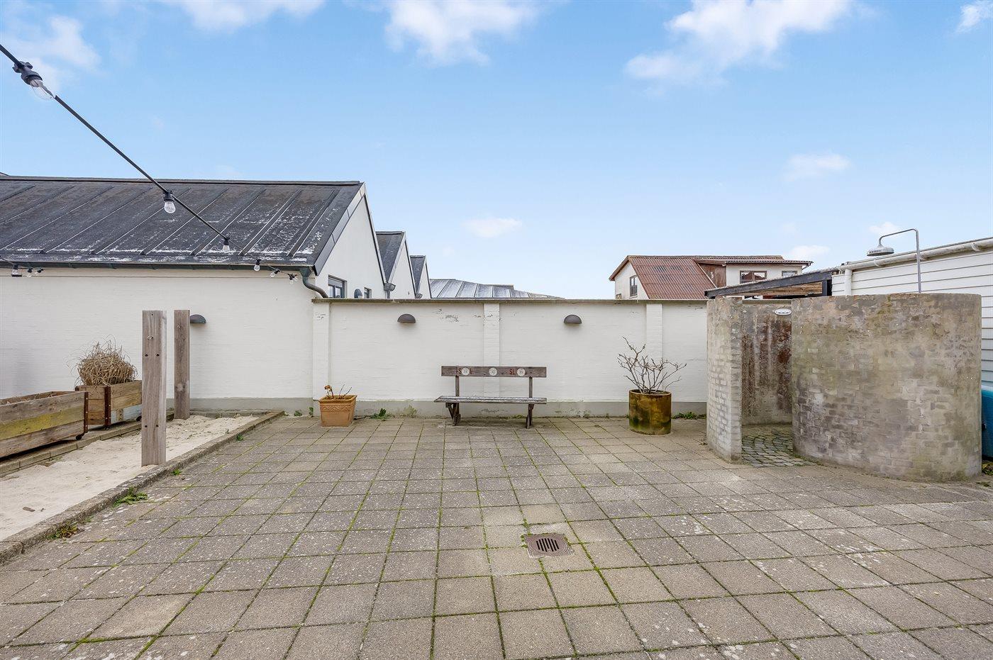 Ferieboligen er beliggende på en 300 m² stor naturgrund. Grunden er indhegnet. Der er 300 m til havet. Nærmeste forretning er beliggende i en afstand af 300 m. Til ferieboligen hører åbent terrasseareal. Udgang til altan. Udendørs bruser. Grill til rådighed. Parkering ved ferieboligen.