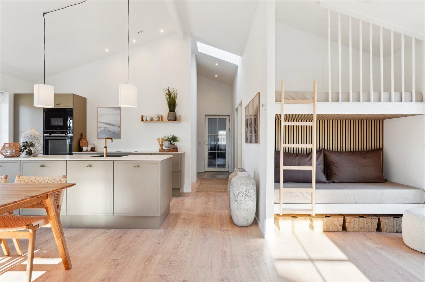 Køkkenet er udstyret med 1 køleskab. Der er 4 induktionskogeplader, varmluftovn, mikrobølgeovn samt opvaskemaskine.