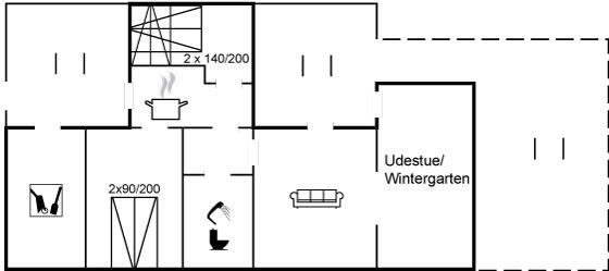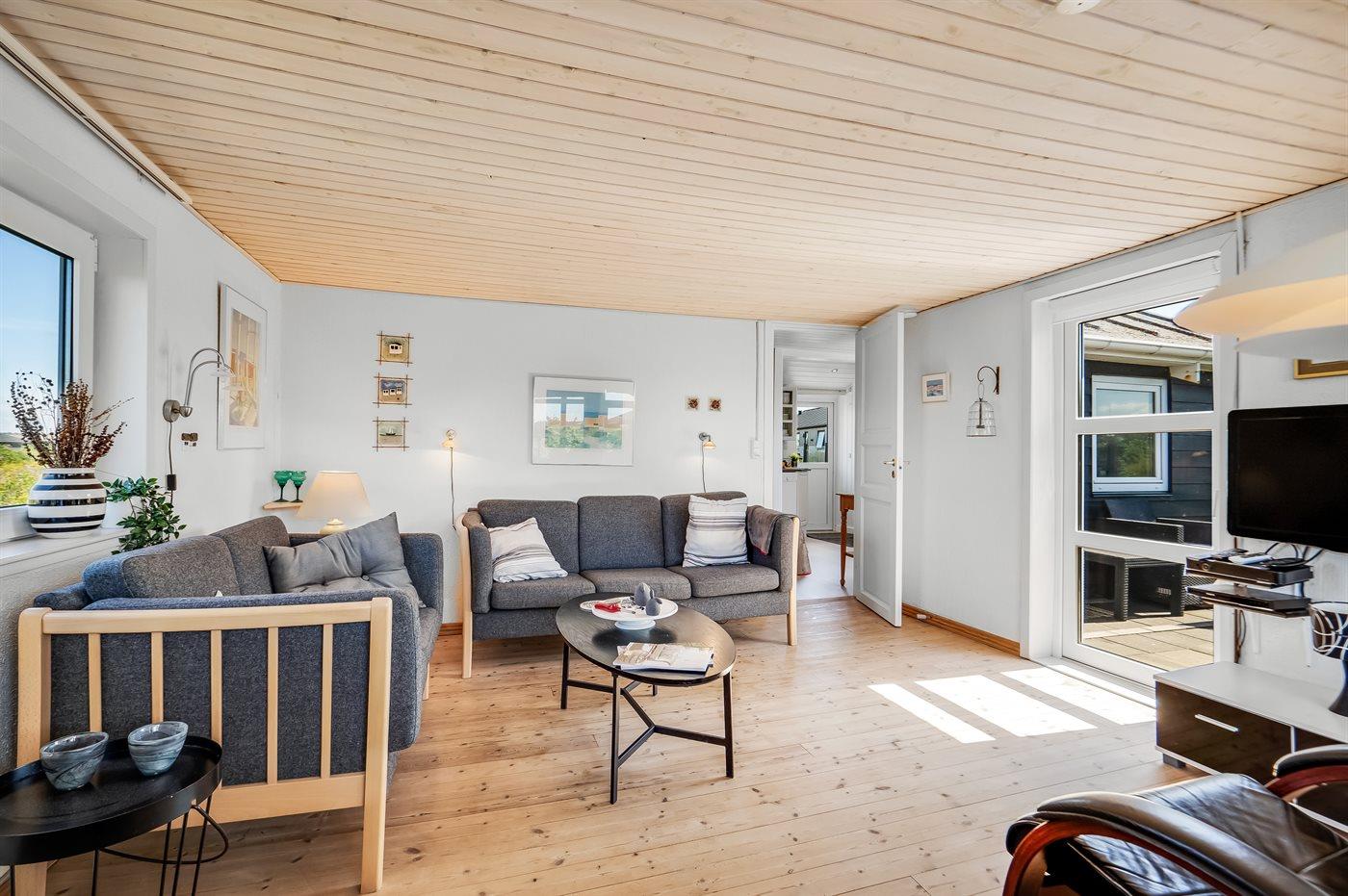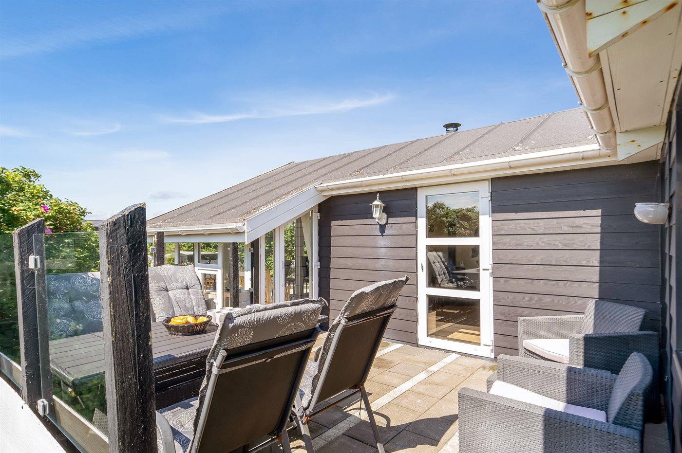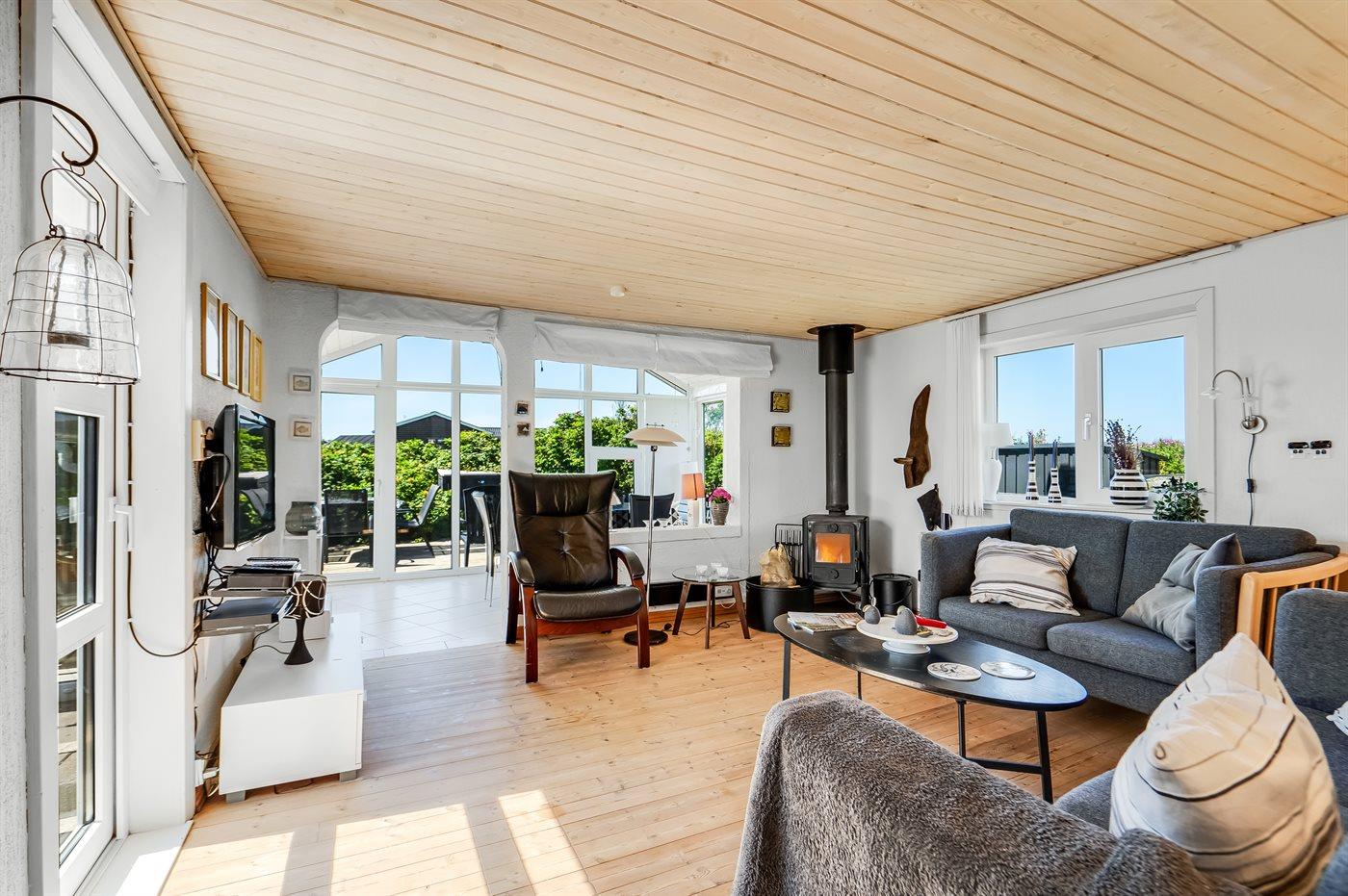 Den skønne udestue med de store glaspartier er uundværlig på de lidt koldere sommeraftener. Huset indbyder til hygge og samvær for ægteparret eller den lille familie.