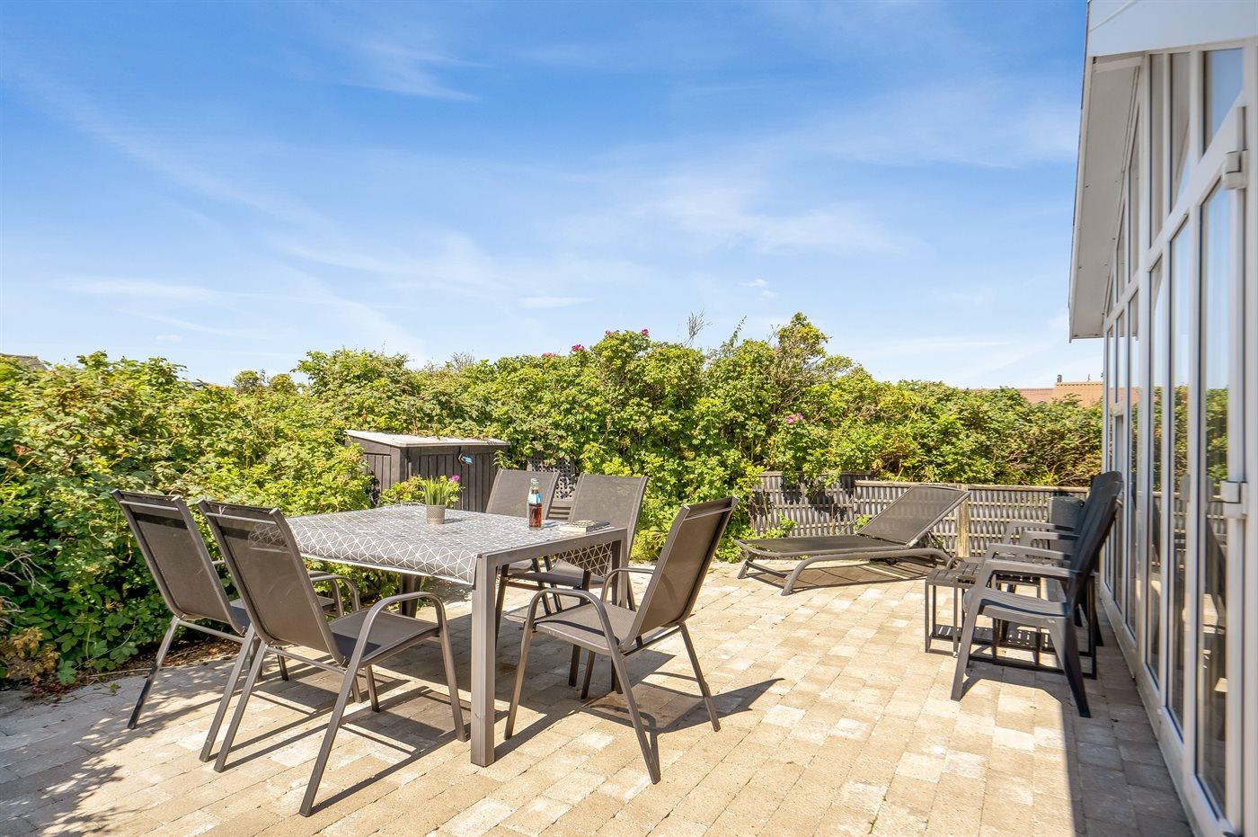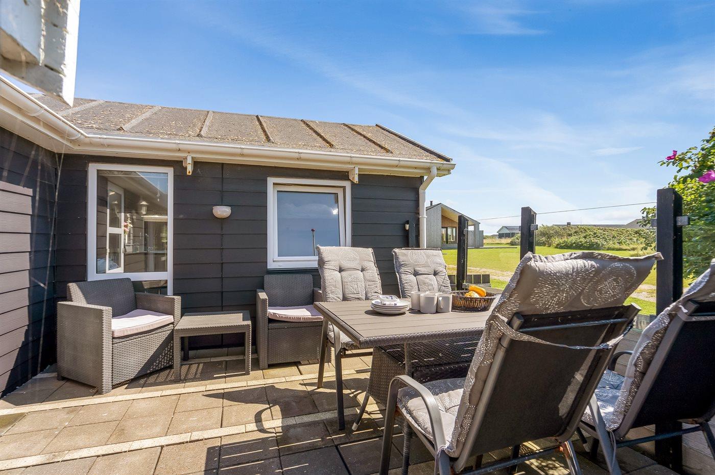 Ferieboligen er beliggende på en 1423 m² stor naturgrund. Der er 375 m til havet. Nærmeste forretning er beliggende i en afstand af 2000 m. Til ferieboligen hører 50 m² lukket terrasse. Parkering ved ferieboligen.