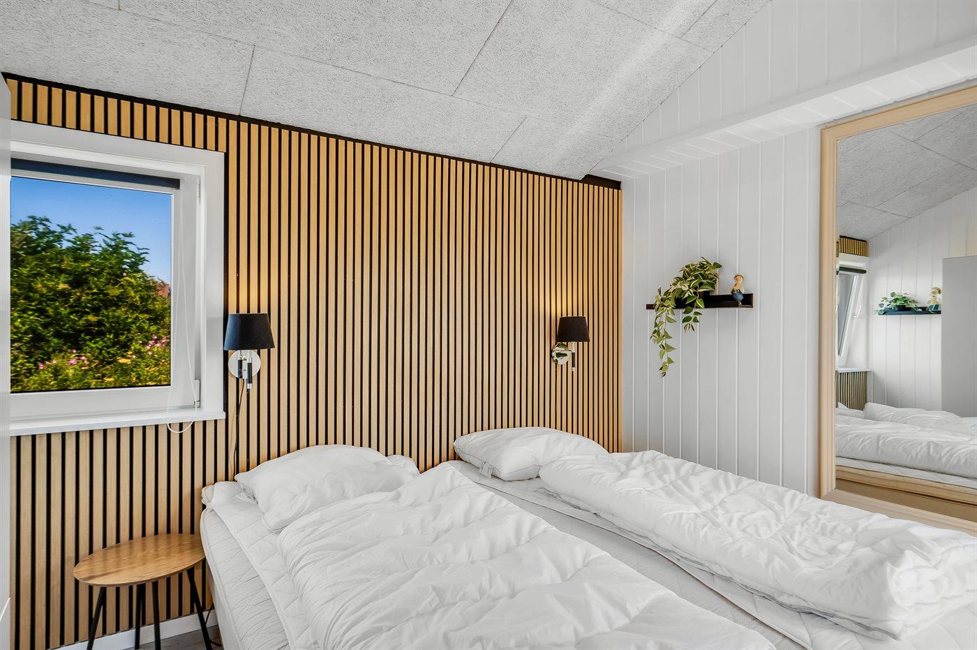 Der er i alt 2 soveværelser. Sovepladserne fordeler sig på: 2 sovepladser i dobbeltseng. 4 sovepladser i køjesenge. Der er tale om en dobbelt køjeseng, som er bedst egnet til 2 voksne og 2 børn.