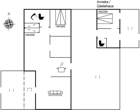 Der er i alt 2 soveværelser. Sovepladserne fordeler sig på: 4 sovepladser i dobbeltsenge. 2 sovepladser i sovesofa (dobbelt).- 2 af disse sovepladser befinder sig i et anneks. Derudover er der 1 stk. barneseng.