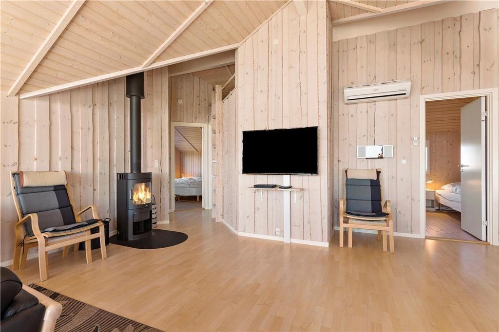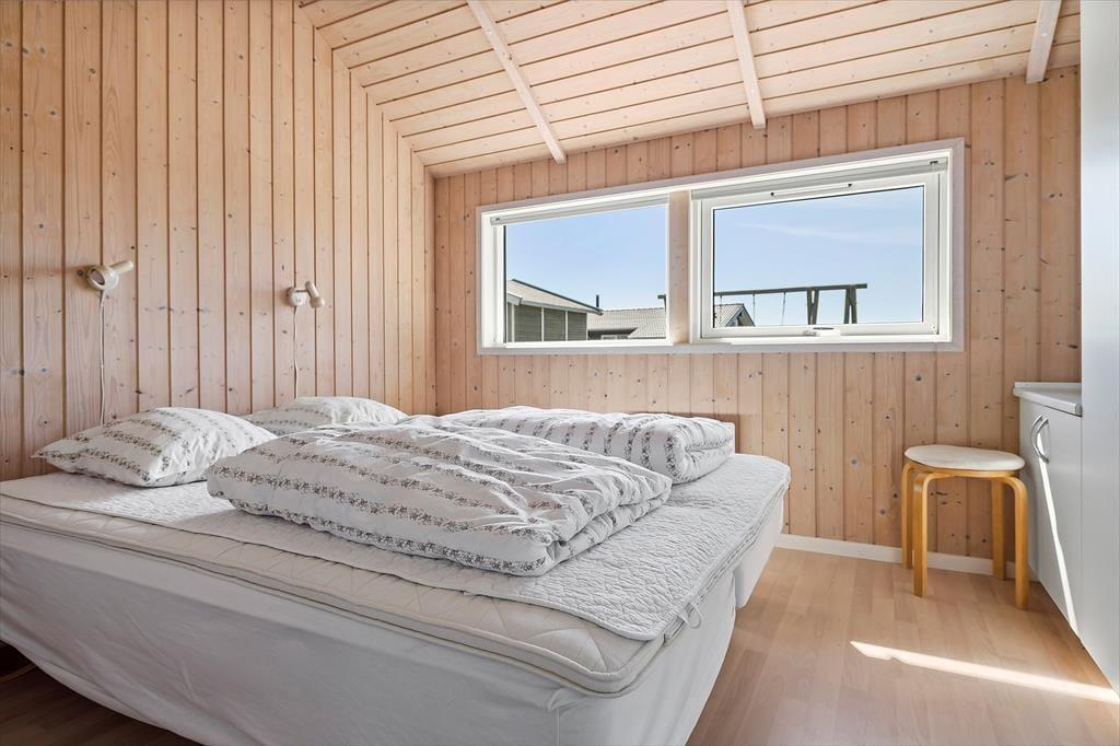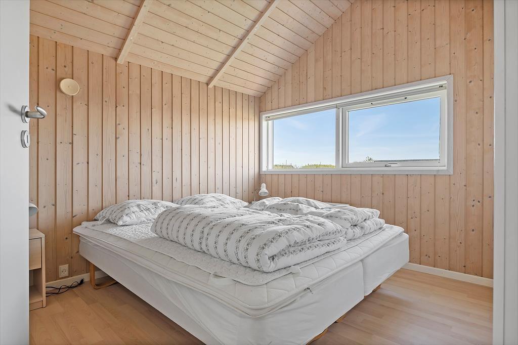 Sommerhuset er indrettet med et stort, åbent opholdsrum, hvor køkken, spiseområde og stue smelter sammen og danner centrum for samværet. Her er god plads til både hyggelige måltider og lange aftener foran brændeovnen, som varmer huset op på kølige dage. De store vinduespartier lader lyset strømme ind og giver samtidig udsigt til de naturskønne omgivelser. Med fire soveværelser og en hems med ekstra madrasser er der plads til, at alle kan finde ro efter en aktiv dag. Huset har to badeværelser, hvoraf det ene byder på både spa og sauna – ideelt til lidt ekstra luksus og afslapning. Indretningen sikrer også, at I kan nyde privatliv, da hver familieafdeling har sit eget badeværelse og soveområde.