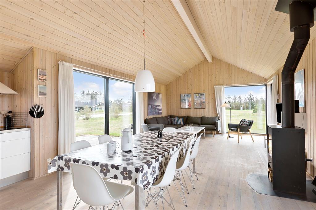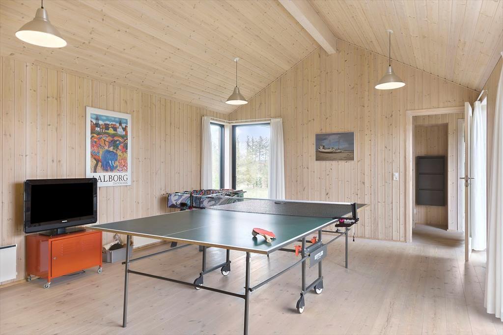 Sommerhuset er både moderne og stilfuldt indrettet med et fokus på lys og luftige rum. Planløsningen er gennemtænkt, og her er der plads til alle. Huset har fire gode værelser, så hele familien kan sove godt, samt to badeværelser – det ene med spa, som indbyder til afslapning efter en aktiv dag. I stuen skaber den varme brændeovn en hyggelig stemning, og de store vinduer giver et flot lysindfald. For de aktive er der et fantastisk aktivitetshus, hvor en bordtennisbord er klar til udfordringer og masser af sjov. Uanset om du vil have en stille stund med en god bog eller en livlig turnering i pingpong, er dette huset, hvor begge dele kan forenes.