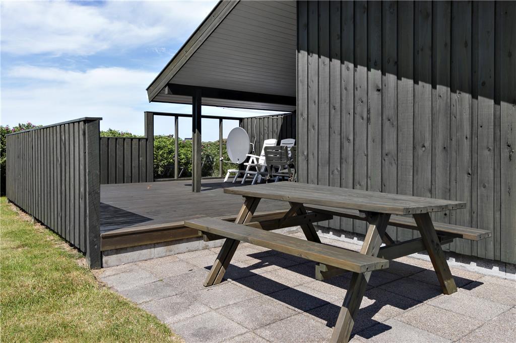 Når solen skinner, vil du sætte pris på husets dejlige terrasse, som giver mulighed for at nyde måltider udendørs eller bare slappe af med en god bog. Her er både plads til at sidde og slappe af i ro og mag, men også god plads til udendørs lege og hygge med familien. Når du træder ud fra huset, er Vesterhavets bølger aldrig langt væk, og du kan hurtigt få fødderne i sandet. Det er et perfekt sted at slappe af og lade tankerne flyve, mens du hører bølgernes brusen og mærker vinden i håret.