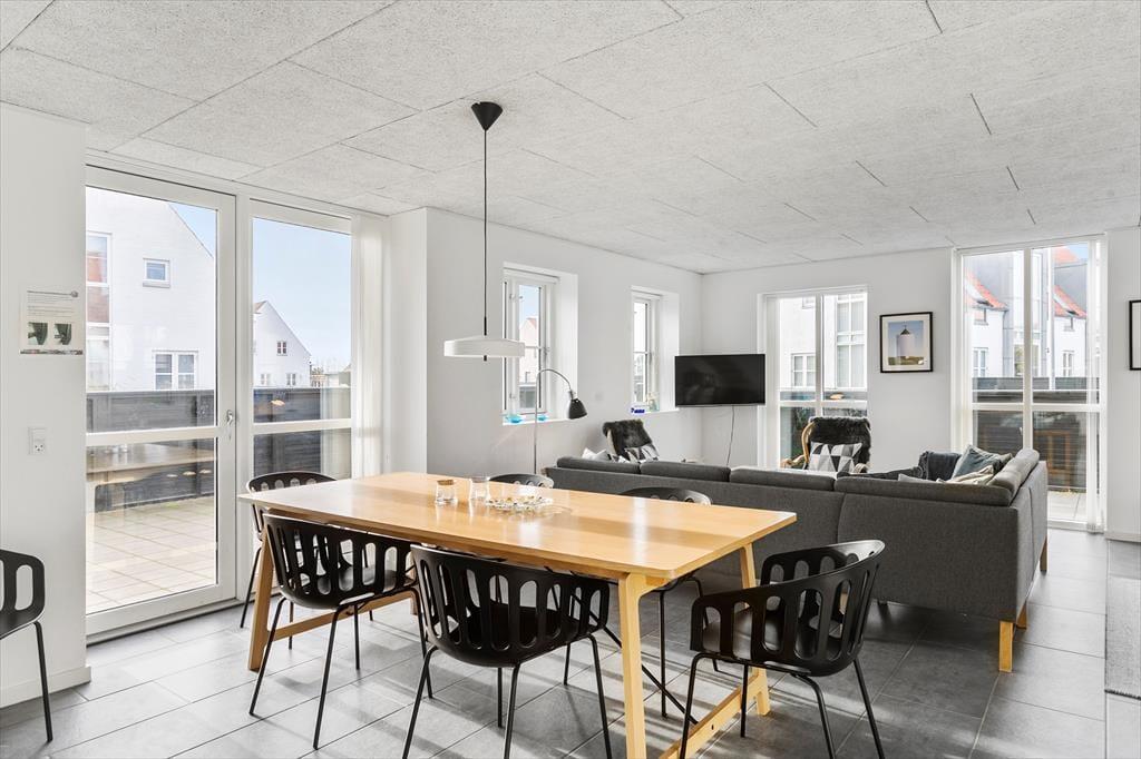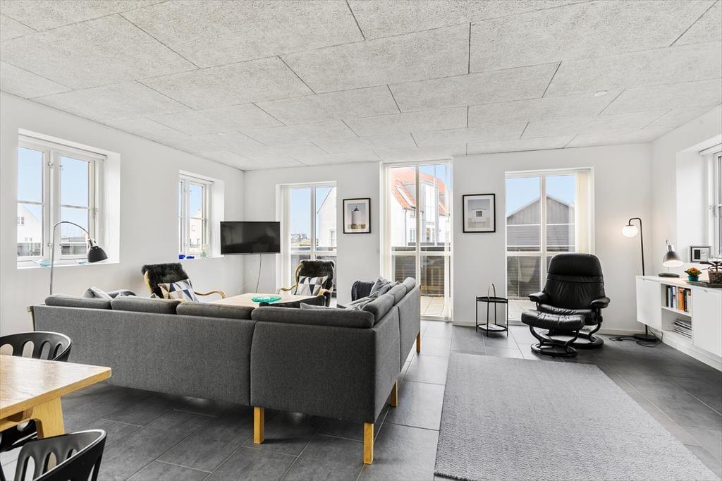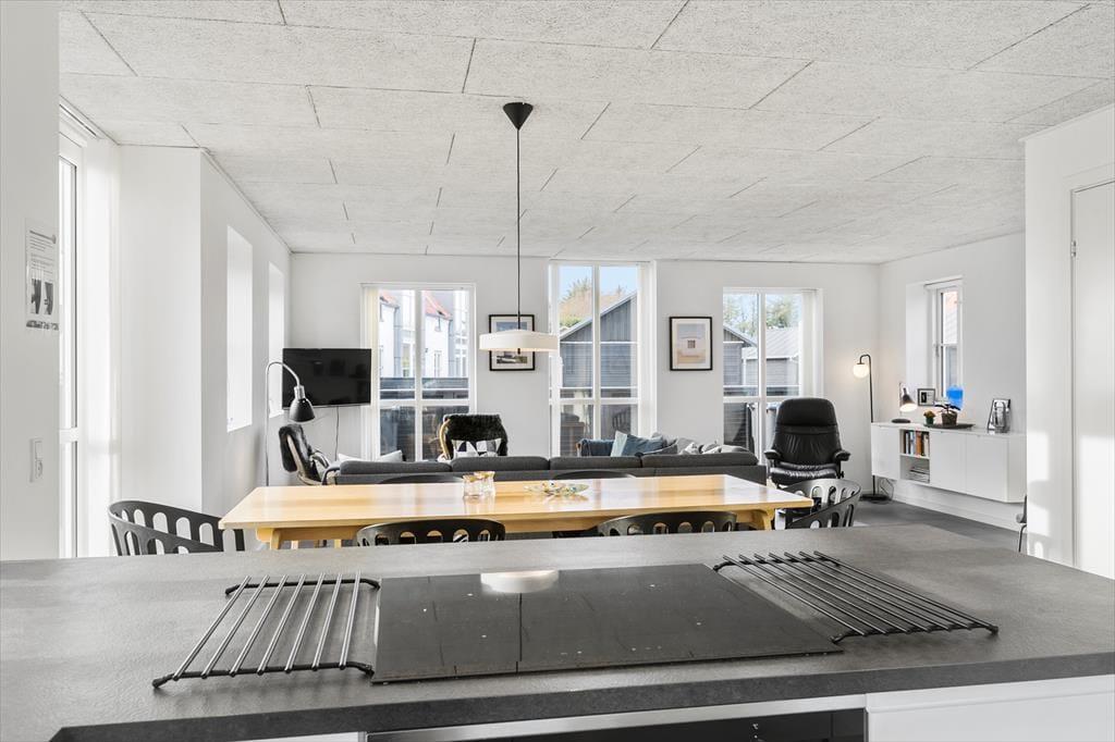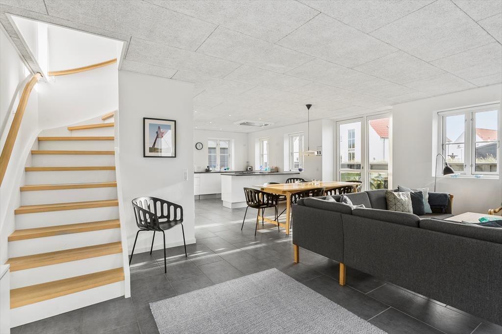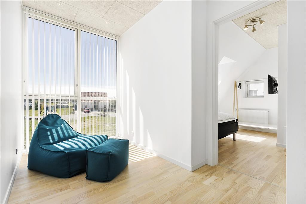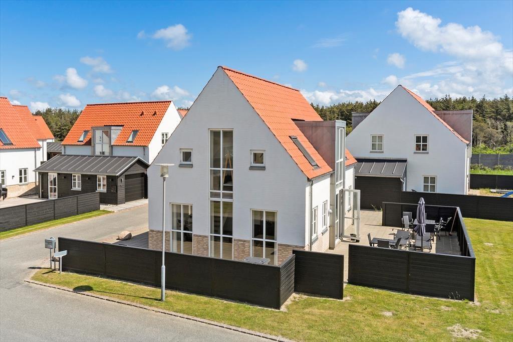 Velkommen til en kombineret by- og badeferie i luksuriøse omgivelser i et af Nordjyllands og Danmarks bedste ferieområder ved Løkken. Huset er tegnet af arkitekt Jørgen Ussing og fordeler sig over to plan; Stueetagen indeholder et moderne køkken med alt i hvidevarer og i åben forbindelse med stuen, som med sine store vinduespartier trækker lyset og himlen ind i boligen, så du i ro og mag kan opleve Vestkystens unikke lys og de skiftende årstiders mange nuancer. Den massive egetræs-trappe fører dig til overetagen med 3 værelser og et lille repos med loft til kip. Der er bad og toilet på begge plan og huset er generelt flot, lyst og moderne indrettet. Medbring gerne tablets hjemmefra, så kan man benytte sig af det trådløse netværk, der helt sikkert vil falde i god jord hos børn og teenagere.