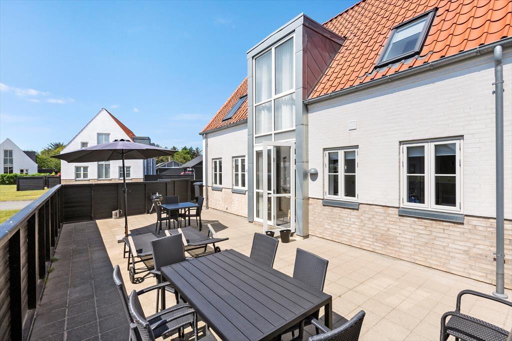 Fra stuen er der udgang til en dejlig stor terrasse, hvor man kan nyde det danske sommervejr fuldt ud. Huset beliggenhed lige udenfor Løkken centrum, gør at man er dejlig tæt på det hele, og alligevel i god afstand fra trafik og larm fra byens liv. Der er naturligvis havemøbler, liggestole og grill til rådighed.