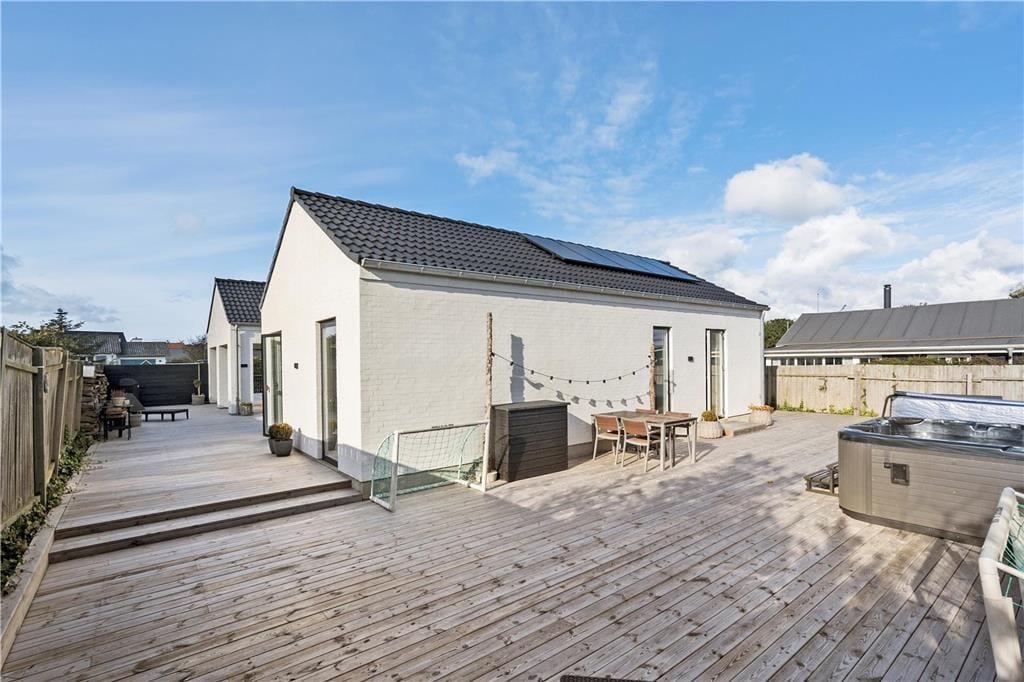 Rundt om huset er der etableret gode terrasser, hvor udelivet kan nydes, når sommeren er over landet. Her er der altid mulighed for at finde sol eller skygge efter behov, og der er mange gode kroge, hvor man kan sidde og dase med en god krimi. Aftensmaden kan naturligvis også serveres under åben himmel, og I kan desuden se frem til en lækker udendørs spa.