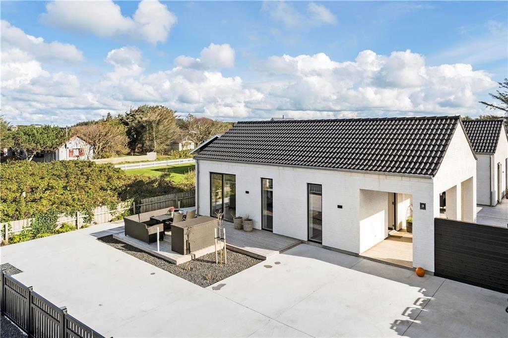I dette eksklusive sommerhus fra 2019 får I en stilfuld og komfortabel base for ferieturen – i et roligt område tæt på stranden og det pulserende liv i Løkken by.