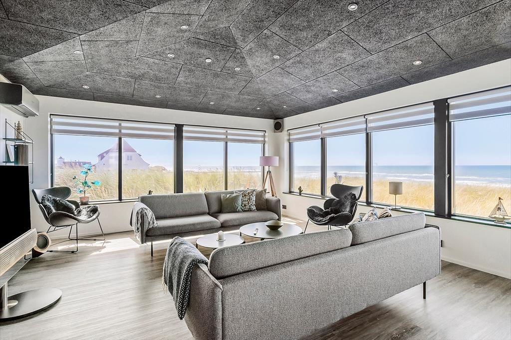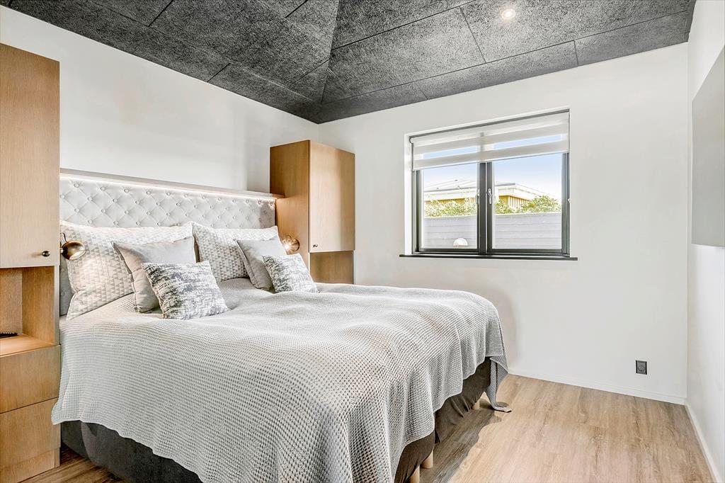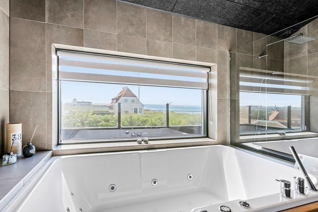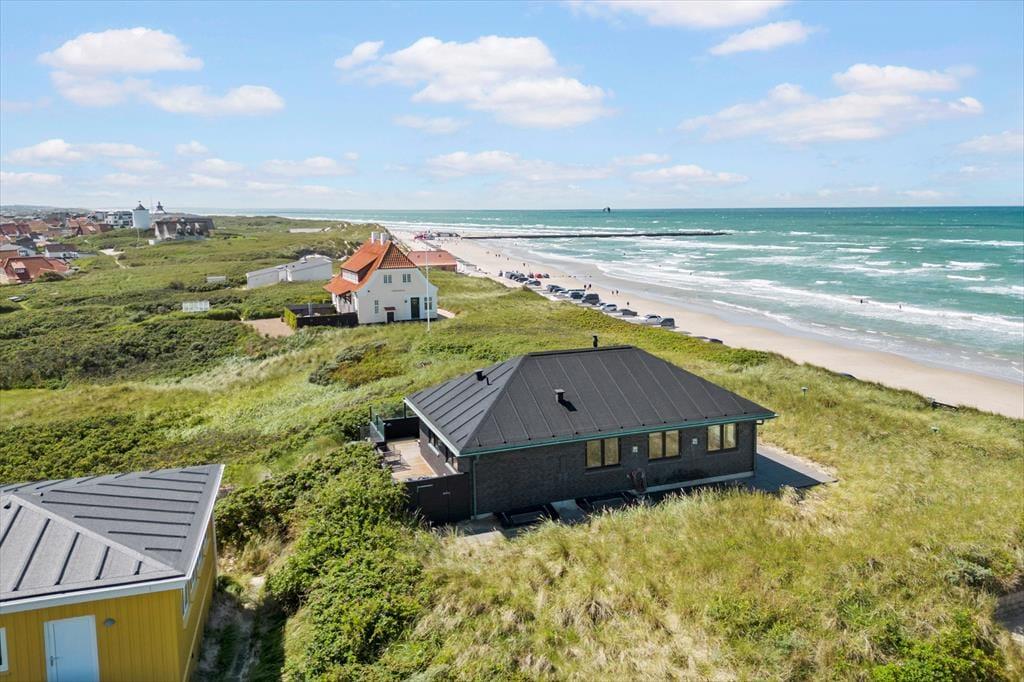 Velkommen til en kombineret by- og badeferie i luksuriøse omgivelser. Huset er bygget i 2018 og er i 2 plan, fordelt med 82 m2 i stueplan og en kælder på 44 m2. Stueplanen indeholder et kombineret køkken-alrum, et master-bedroom og et badeværelse med spabad – herfra er der panoramaudsigt over Vesterhavet og molen. Kælderen indeholder to værelser og et flot badeværelse med sauna. De perfekte rammer for et welnessophold.