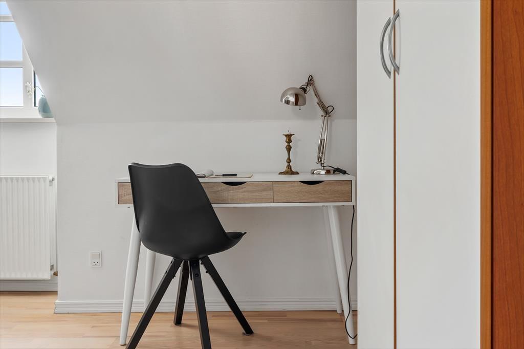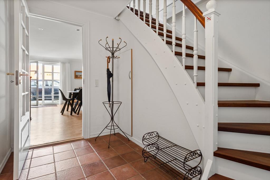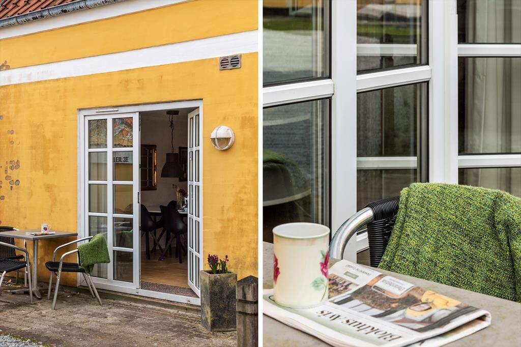Fra Stuen kan man gå ud på sin egen lille terrasse, hvor man kan sidde og nyde sin kaffe. Ellers er der kun få meter til nærmeste cafe eller restaurant, som der er et stort udvalg af i Løkken. På samme side som terrassen er der en privat parkeringsplads til lejligheden.