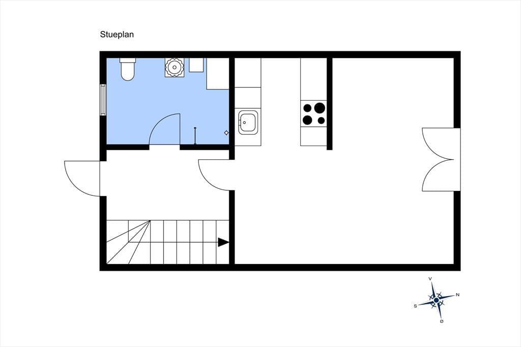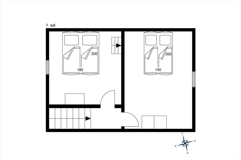 Lejligheden er i to plan og er en del af Badehotellet i Løkken. Den råder over fire sovepladser og er derfor velegnet til både en lille familie og et enkelt eller to par, som gerne vil holde ferie sammen. I stueetagen finder man entre med trappe og indgang til badeværelse med bruseniche og vaskemaskine, samt køkken med alt i hårde hvidevarer i åben forbindelse med stuen. Herfra er der udgang til lille nordvendt terrasse. På 1 salen er der to rummelige soveværelser med skabe.
