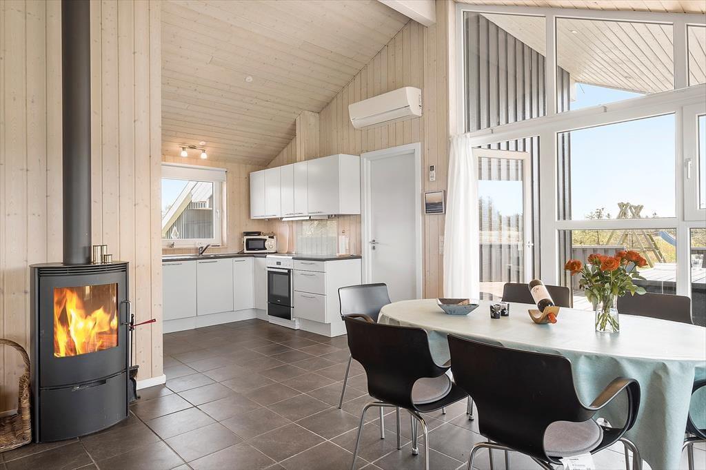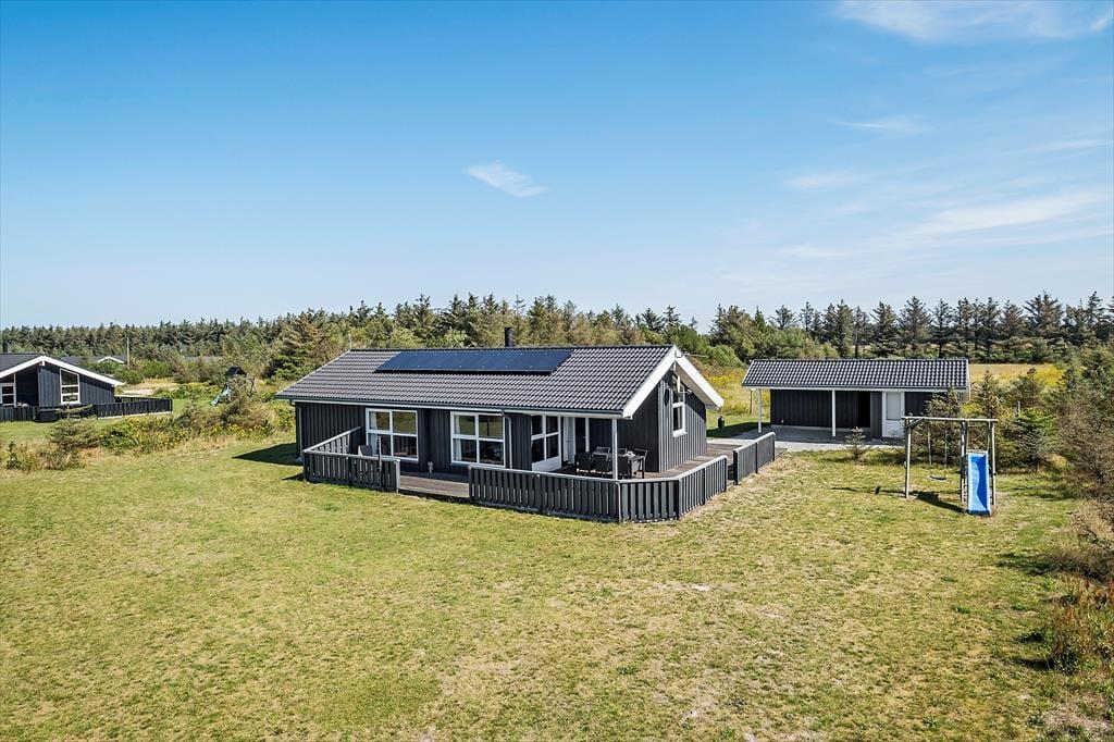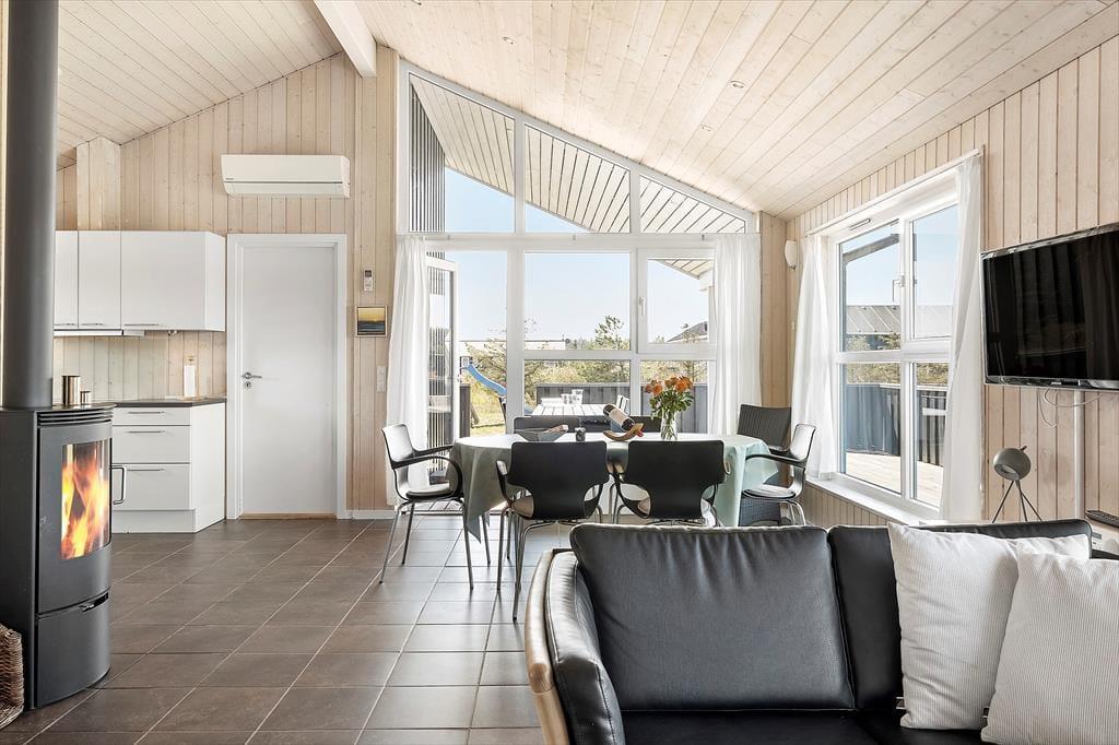 Dette moderne indrettede sommerhus fra 2009 indbyder til en vellykket ferie for hele familien. Samlingspunktet er det åbne køkken-alrum med de store, flotte vinduespartier som virkelig lukker det nordjyske lys ind og skaber en dejlig atmosfære. Her er både varmepumpe, gulvvarme og mulighed for at tænde op i brændeovnen. Huset egner sig til 8 personer, med tre soveværelser og en hems som specielt er populær blandt de yngre familiemedlemmer. Her er både gæstetoilet og et rummeligt badeværelse med et dejligt spabad, som kan bruges til afslapning efter en sommerdag ved havet eller i haven. Huset råder desuden over vaskemaskine, tørretumbler, opvaskemaskine, parabol og naturligvis trådløst internet til fri afbenyttelse.