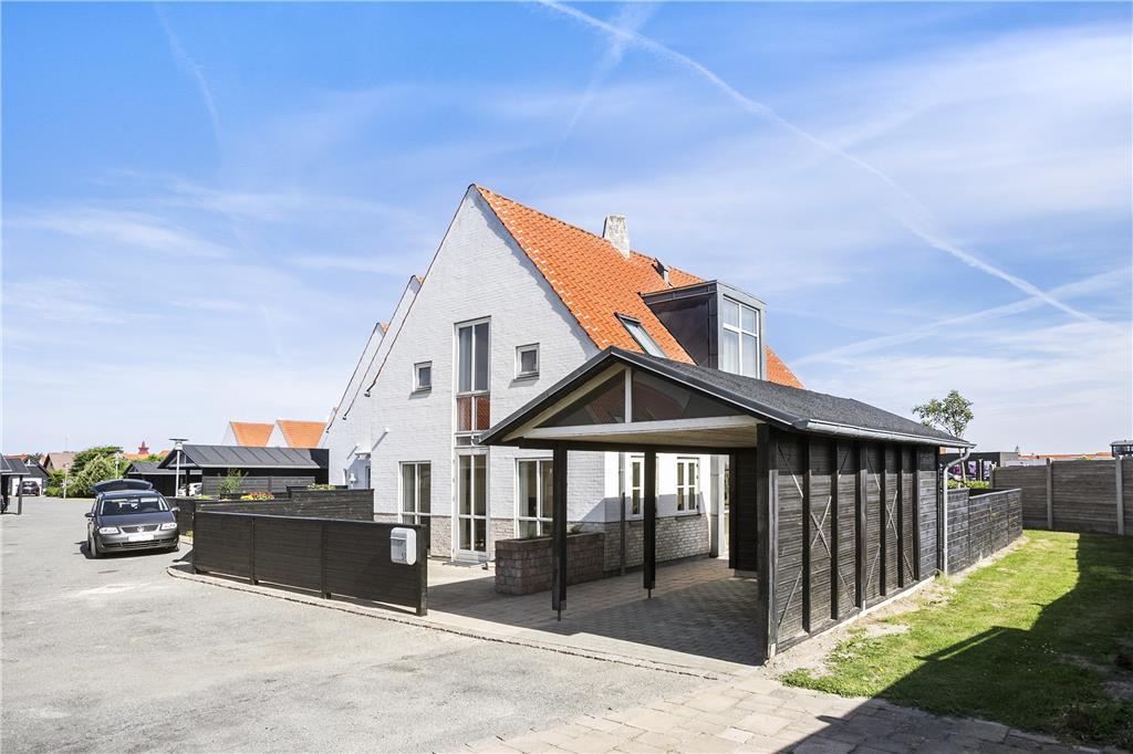 Huset er beliggende for enden af vejen, hvilket betyder at det er ugeneret og med flere gode terrasser. Fra stuen er der adgang til en dejlig sydvendt terrasse og på den anden side er der lavet et hyggeligt aflukket gård-miljø, hvilket altid gør det muligt at finde sol, skygge eller læ. Huset er placeret meget tæt på centrum af Løkken og der er ikke langt til stranden, hvor man i løbet af dagen kan være heldig at få fat i helt friskfangede fisk til aftensmaden. Der er havemøbler, liggestole og grill til rådighed og det er muligt at benytte husets carport samt parkere med en ekstra bil.