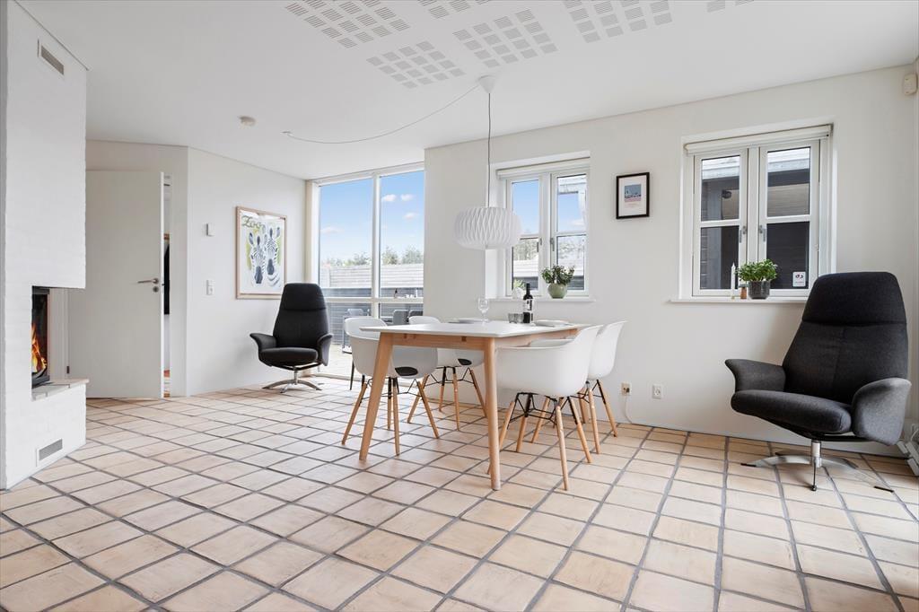 Dette flotte, toetagers sommerhus ligger i Josefines Have, et kvarter med både by- og fritidshuse tegnet af arkitekten Jørgen Ussing. Dette dejlige sommerhus er oplagt til en hyggelig byferie, hvad enten man er en familie eller et eller to par afsted sammen. Husets stueplan indeholder et moderne køkken med alt i hårde-hvidevarer, et dejligt opholdsrum med spiseplads, sofagruppe og en fantastisk flot brændeovn midt i rummet som kan nydes fra flere vinkler. Alle soveværelser er beliggende på den øverste etage og her er desuden et flot badeværelse med et lille spabad som er beregnet til max. to personer. Generelt velholdt, lyst og moderne indrettet. Medbring gerne tablets hjemmefra, så kan man benytte sig af det trådløse netværk, der helt sikkert vil falde i god jord hos børn og teenagere.