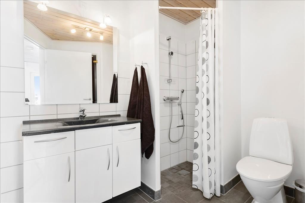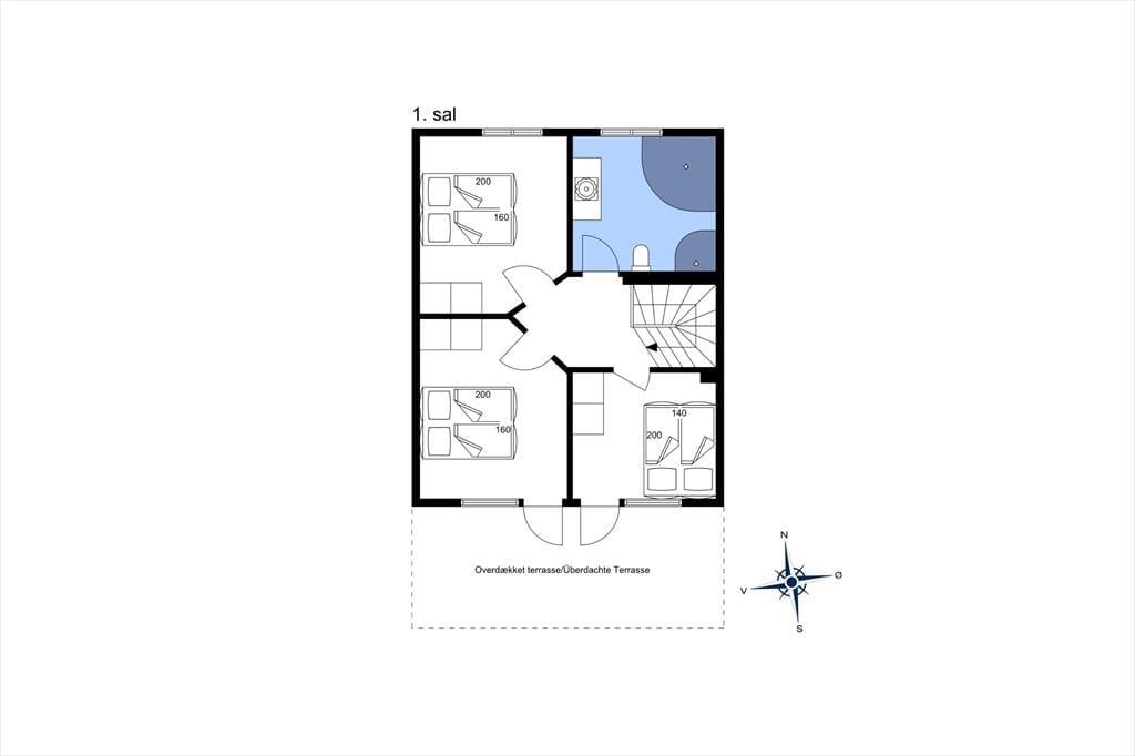 Ferielejligheden, der hører til Løkken Feriepark Nordenlys, er i to plan med god plads til hele familien. Stueetagen er indrettet med stort åbent køkken-alrum med spiseplads og opholdsrum samt et soveværelse og badeværelse med sauna. I det øverste plan forefindes et rummeligt badeværelse med spabad, som kan benyttes til afslapning efter en dejlig sommerdag på stranden og desuden yderligere tre soveværelser. Fra stuen er der udgang til terrassen og fra to af værelserne på 1. sal er der adgang til en dejlig altan, hvorfra solen og udsigten kan nydes.